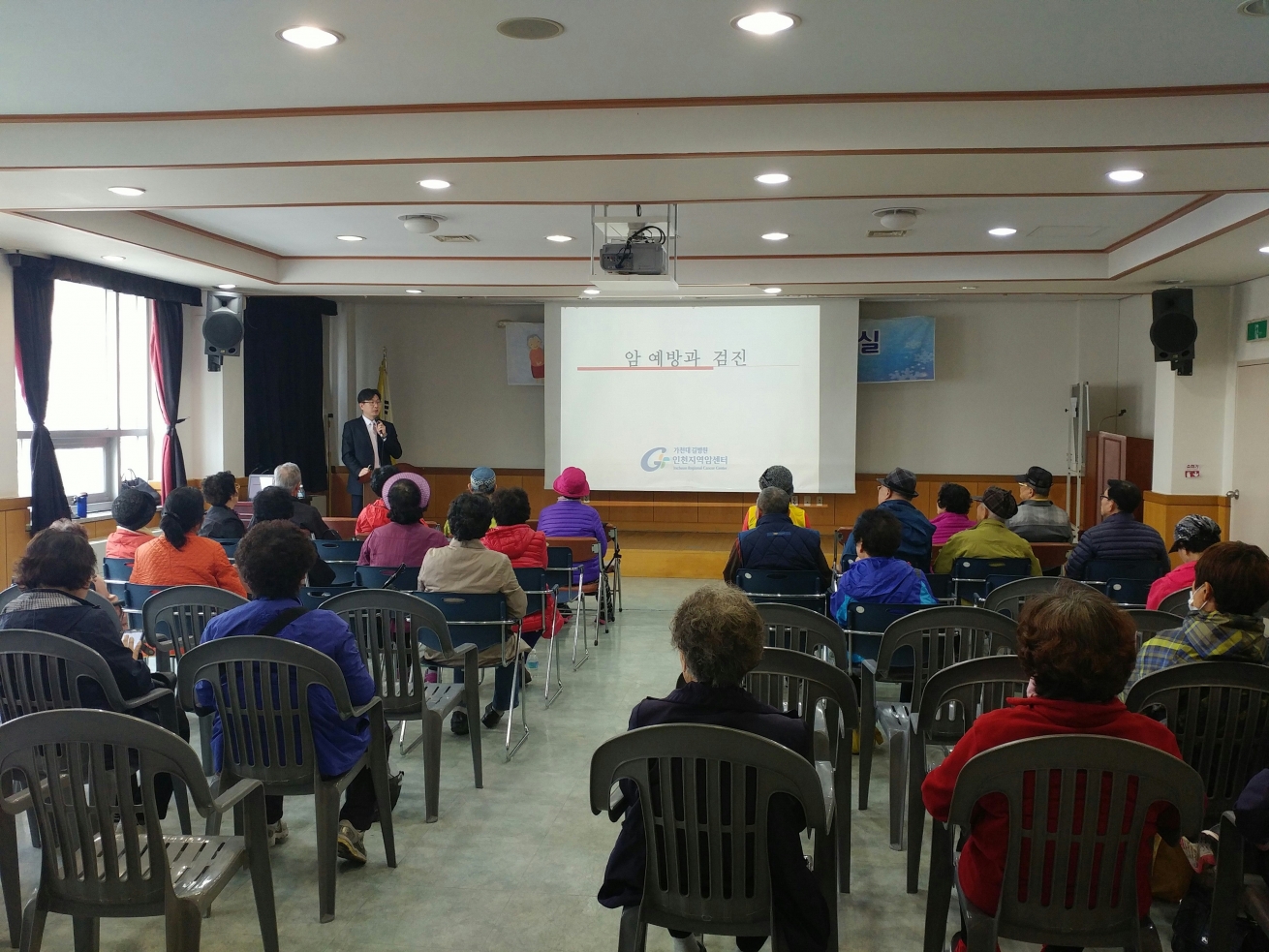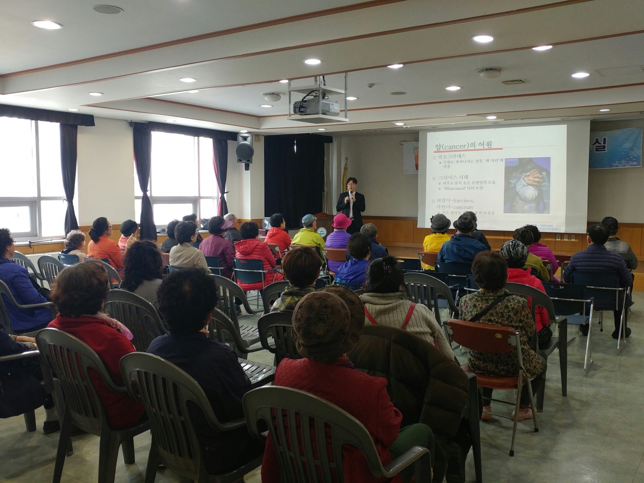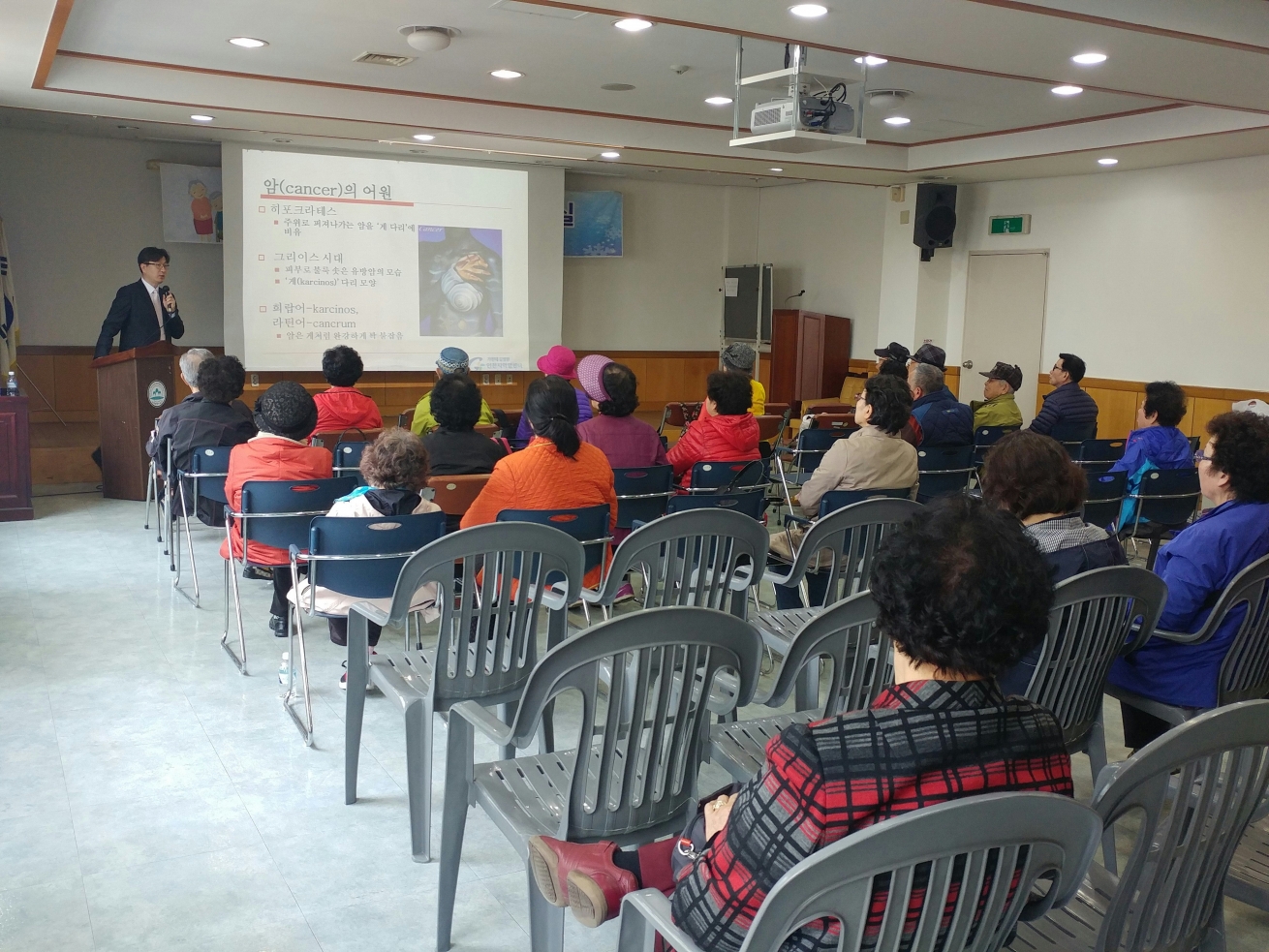 2018년 4월 10일 남구 지역주민을 대상으로 남구보건소 에서 암 예방 및 국가 암 검진에 대해 가천대학교 예방의학과 고광필 교수가 교육을 실시하였습니다.