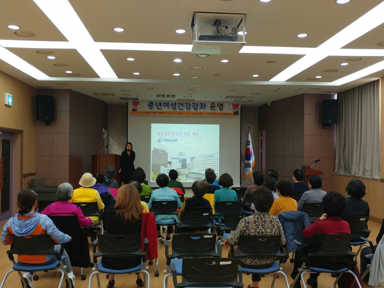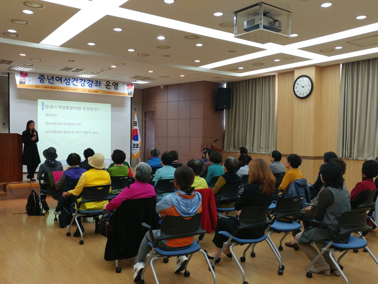 2018년 4월 10일(화) 남구 숭의보건지소 에서 주민 40명을 대상으로 혈액종양내과 안희경 교수는 유방암 치료 및 예방 관리에 대한 교육을 하였습니다.