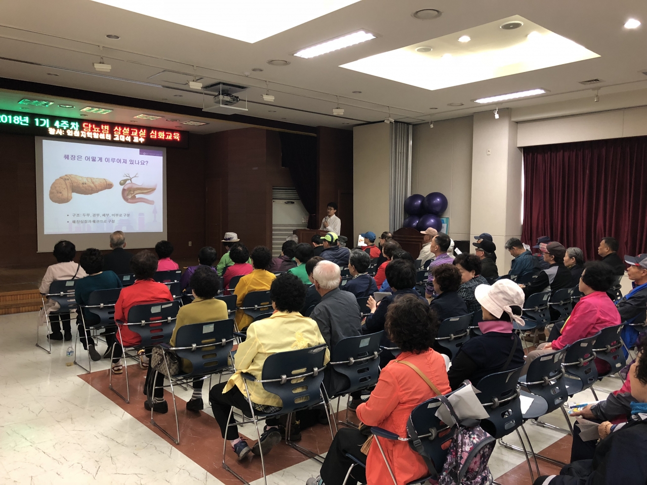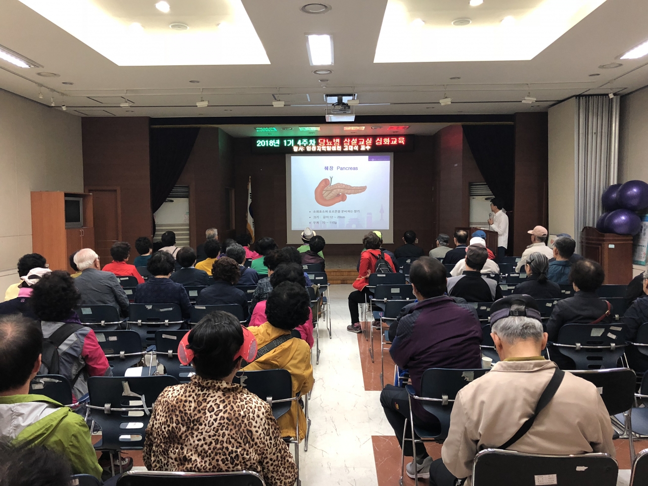 2018년 4월 27일(금) 부평구에 위치한 부평구보건소 (3층 대강당)에서 지역주민 70명을 대상으로 외과 고대식 교수가 췌장암의 치료와 예방에 대한 교육을 하였습니다.