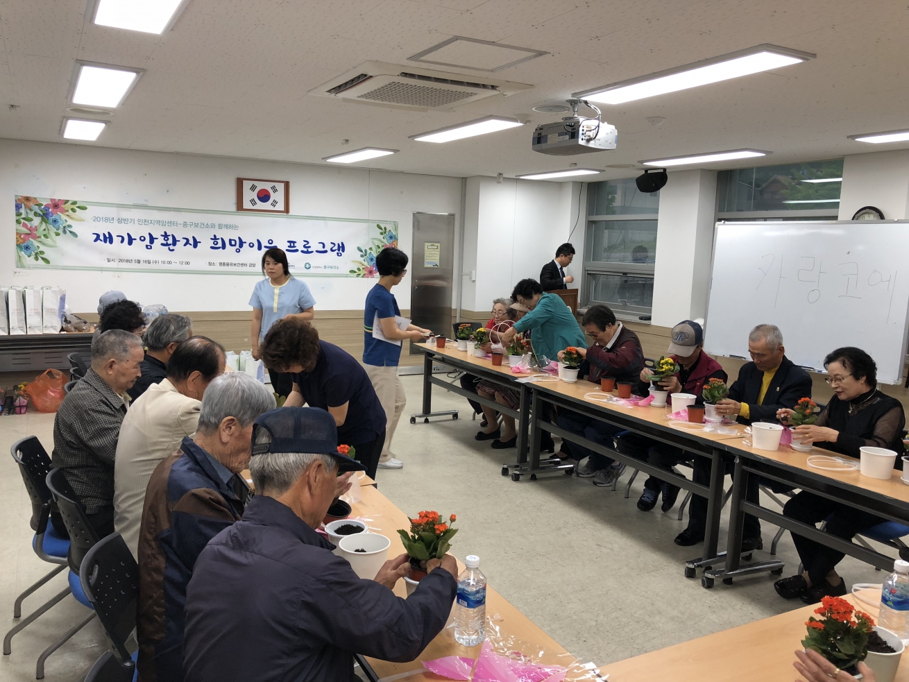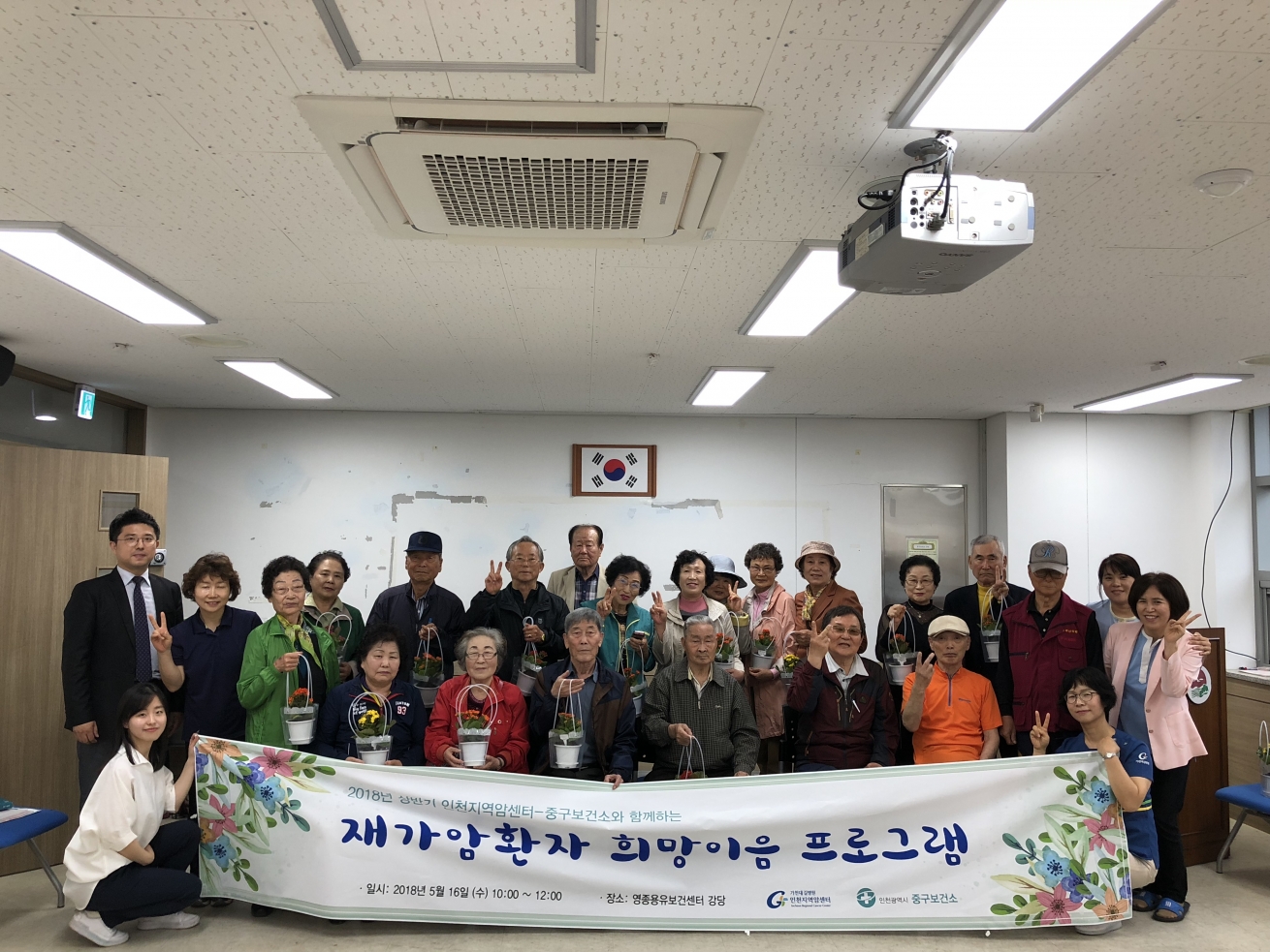 2018년 5월 16일(수) 10:00부터 12:00까지 영종용유보건센터 에서 인천지역암센터-중구보건소와 함께하는 재가암환자 대상으로