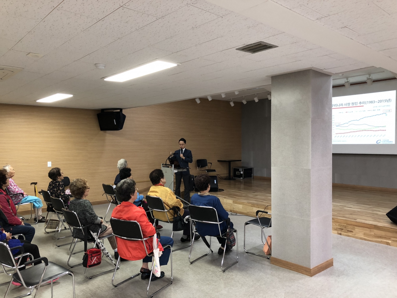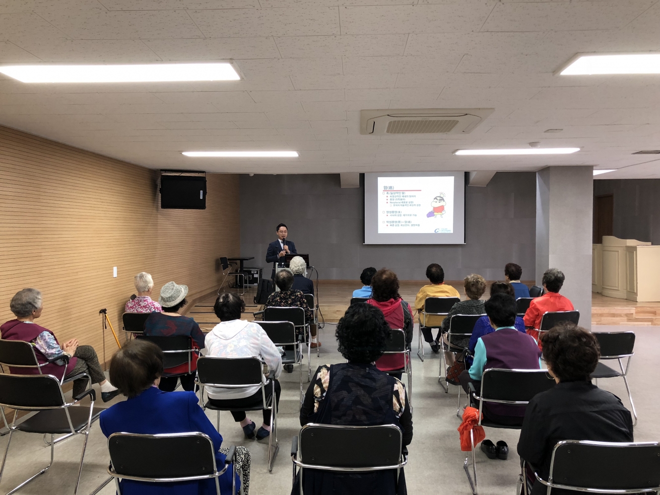 2018년 5월 18일 연수구 지역주민을 대상으로 세화사회종합복지관 에서 암 예방 및 국가 암 검진에 대해 가천대길병원 직업환경학과 최원준 교수가 교육을 실시하였습니다.