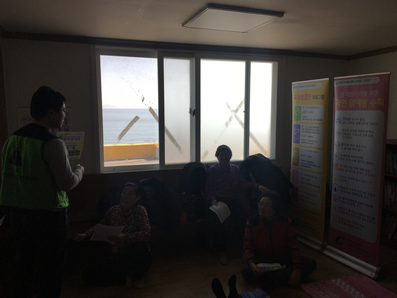 2018년 3월 6일 소야도 도서지역주민을 대상으로 암 예방 및 국가 암 검진에 대해 인천지역암센터 에서 교육을 실시하였습니다.