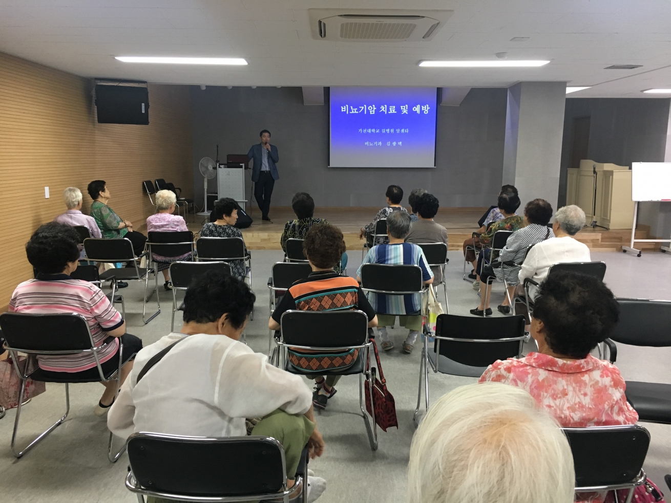 세화사회종합복지관 비뇨기암의 예방과 관리 2017년 7월 28일(금) 세화사회종합복지관 주민 50명을 대상으로 비뇨기과 김광택 교수는 비뇨기암의 예방과 관리에 대한 교육을 하였습니다.