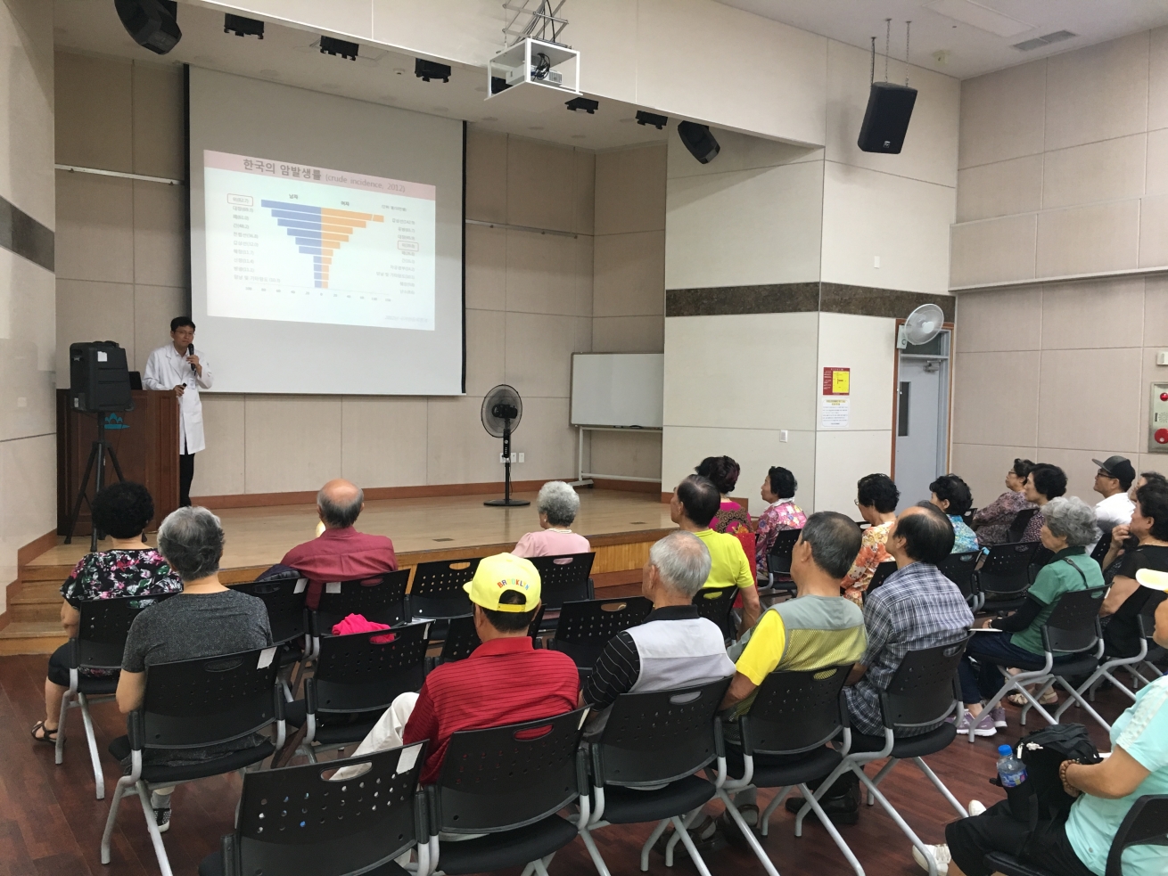 2017년 8월 8일(화) 남구 주안노인문화센터 에서 주민 50명을 대상으로 외과 양준영 교수는 위암 치료 및 예방에 대한 교육을 하였습니다.