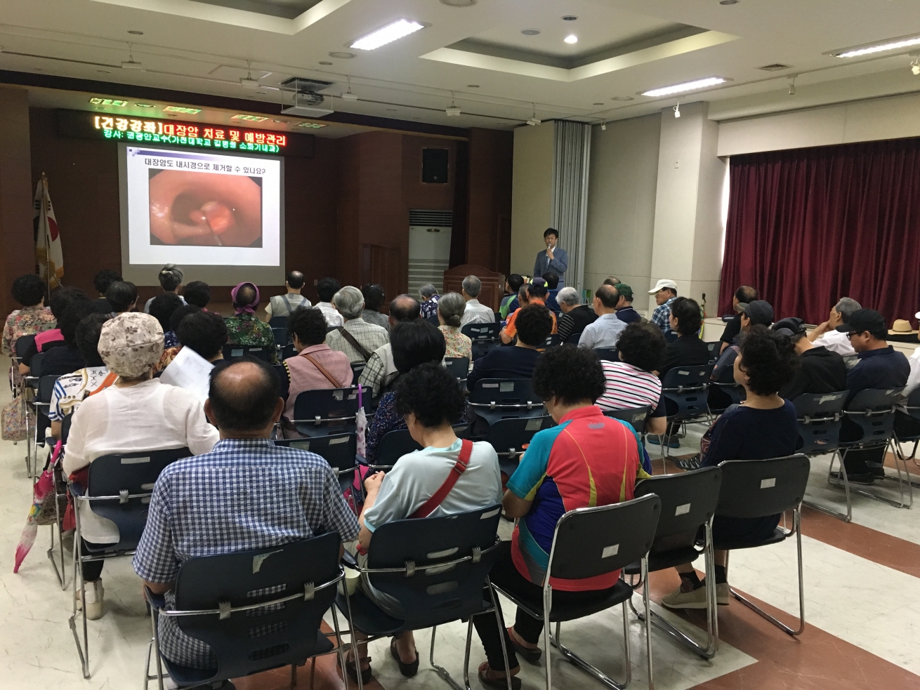 2017년 8월 23일 (수) 가천대 길병원 소화기내과 권광안 교수가 부평구보건소에서 60여명을 대상으로 대장암 치료 및 예방관리,대장암 발생의 원인,암예방과 조기암검진의 중요성 등에 대해서 교육하였습니다.