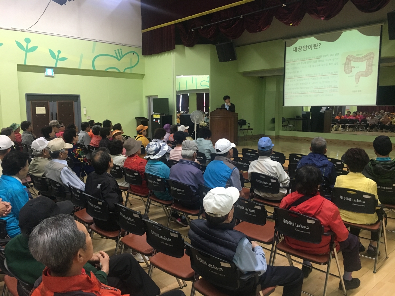 5. 25 (목) 가천대 길병원 소화기내과 김의주 교수가 중구노인복지관 50여명을 대상으로 대장암 치료 및 예방관리,대장암 발생의