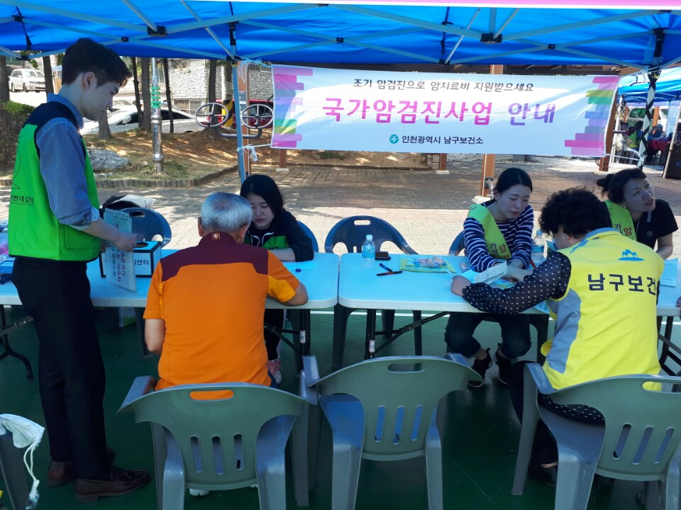 2017년 5월 31일(수) 남구에 위치한 삼호어린이공원 에서 지역 주민들을 대상으로 남구보건소와 함께 암예방 관리 및 국가암검진에 대해 홍보 캠페인을 실시하였습니다.