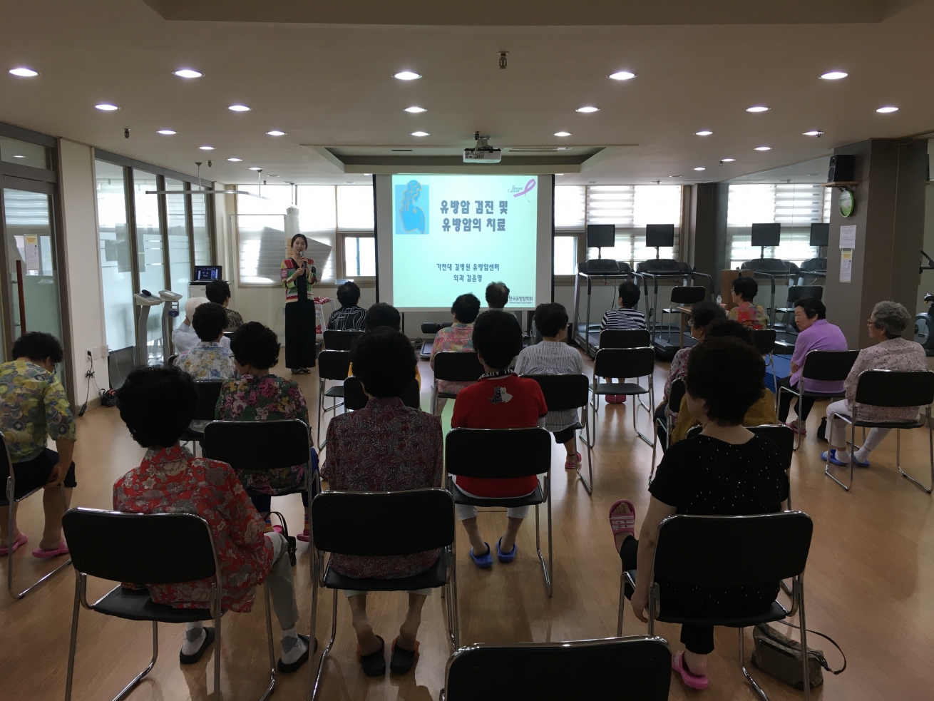 2017년 6월 27일(화) 계양구 효성건강생활지원센터 에서 주민 30명을 대상으로 외과(유방암클리닉) 김윤영 교수는 유방암 치료 및 예방 관리에 대한 교육을 하였습니다.