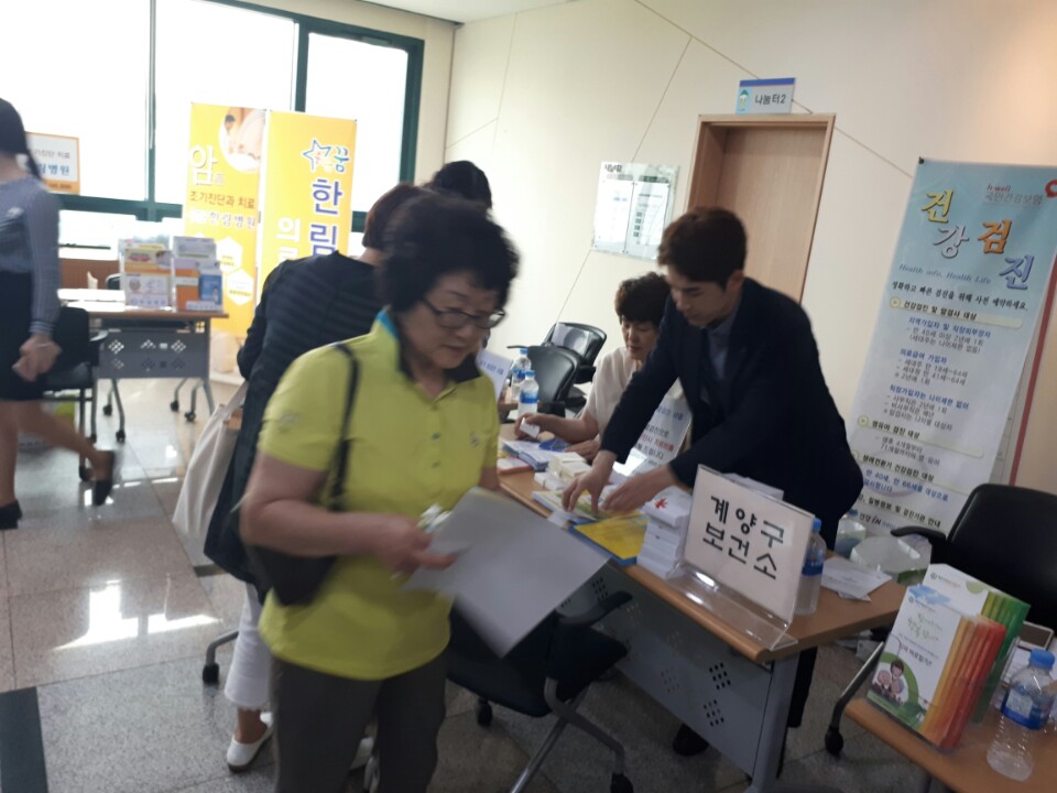 2017년 6월 27일(화) 계양구에 위치한 계양구청 에서 지역 주민들을 대상으로 계양구보건소와 함께 13:00-14:00시까지 암예방 관리 및 국가암검진에 대해 홍보 캠페인을 실시하였습니다.