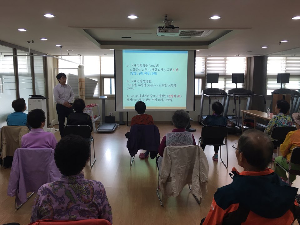 2017년 4월 25일(화) 계양구에 위치한 효성건강생활지원센터에서 주민 20여명을 대상으로 소화기내과 김수영 교수는 간암 치료 및 예방관리에 대한 교육을 하였습니다.