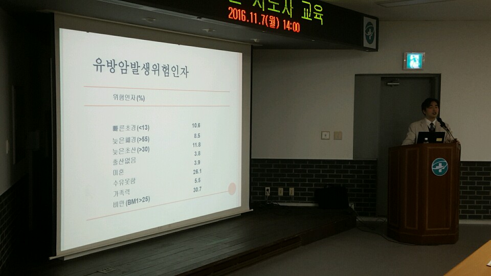 2016년 11월 7일(월) 강화군 보건소에서 지역대표 26명을 대상으로 외과(유방암클리닉) 김관일