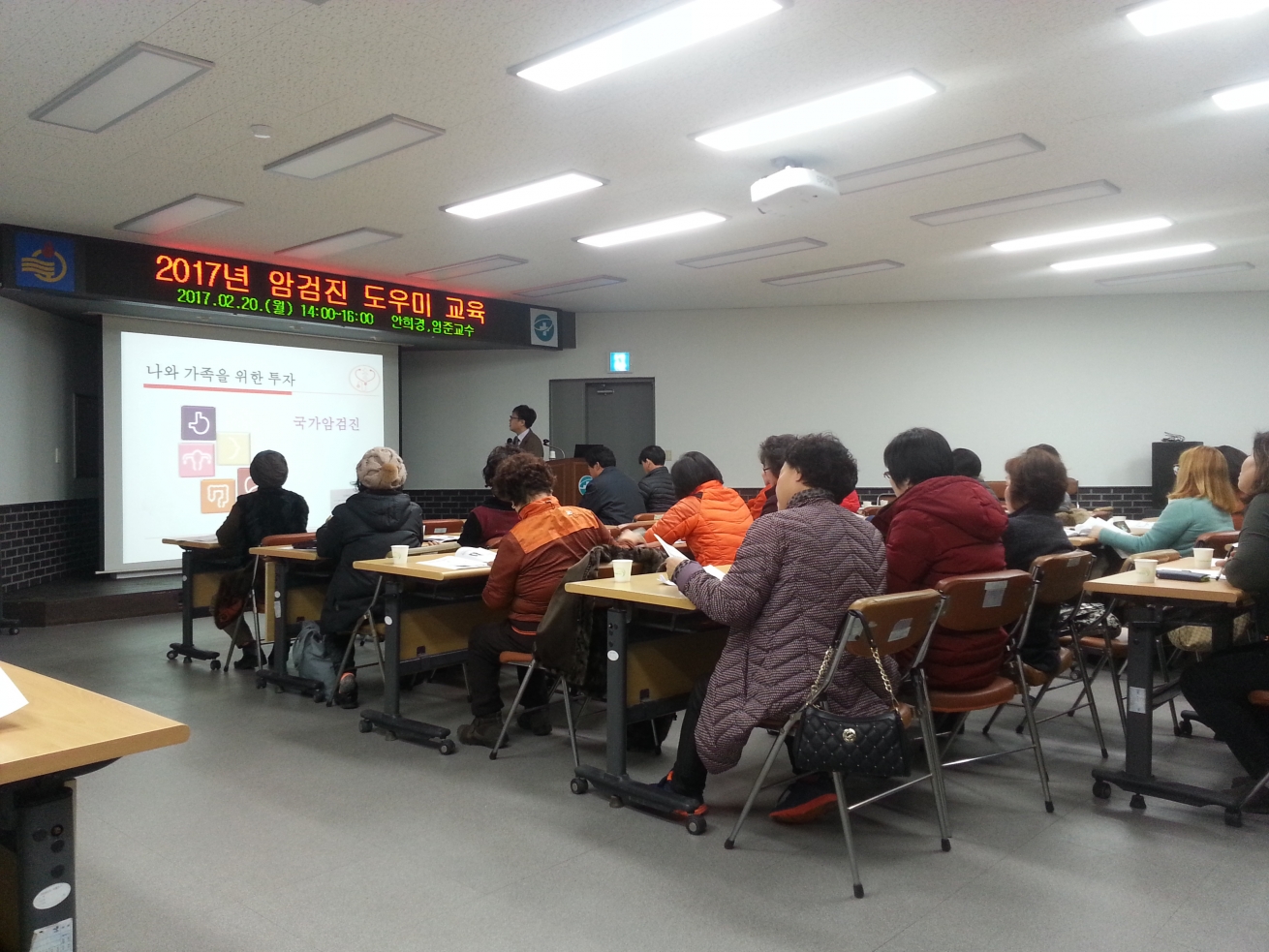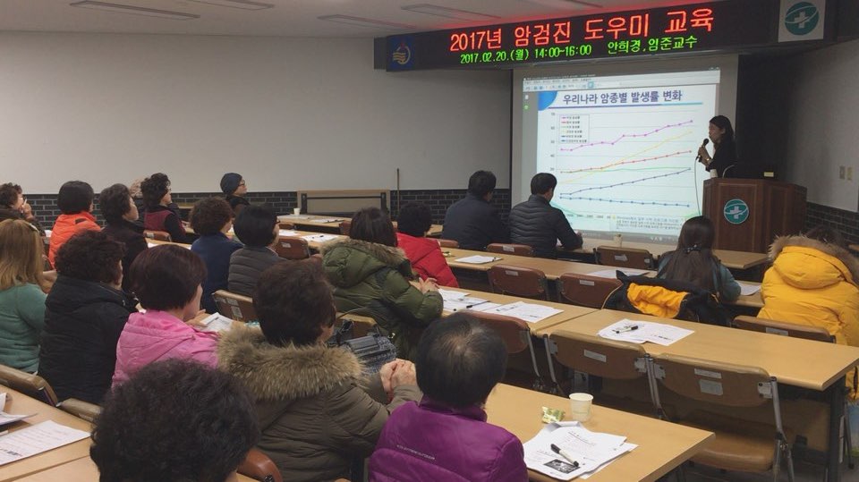 2. 20(월) 강화군 보건소에서 강화군 암검진 도우미를 대상으로 폐암 치료 및 예방과 암예방 검진에 대한 1차 교육을