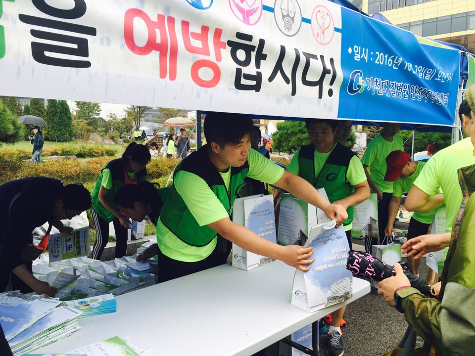 인천지역암센터에서는 2016년 10월 2일 (일) 송도 국제 마라톤 대회장에서 참가자들을 대상으로 암예방 홍보 활동을 하였습니다.