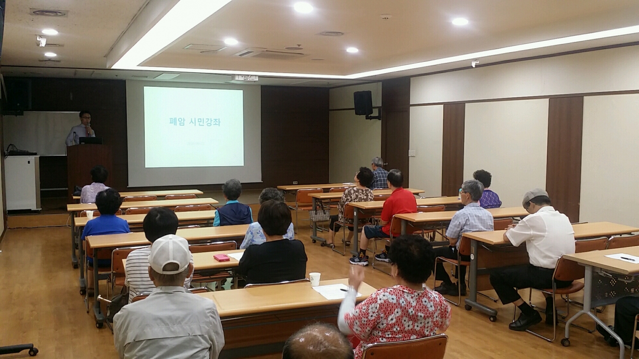 강신명 교수가 암 예방과 검진에 대한 내용으로 강좌를 실시하였습니다.