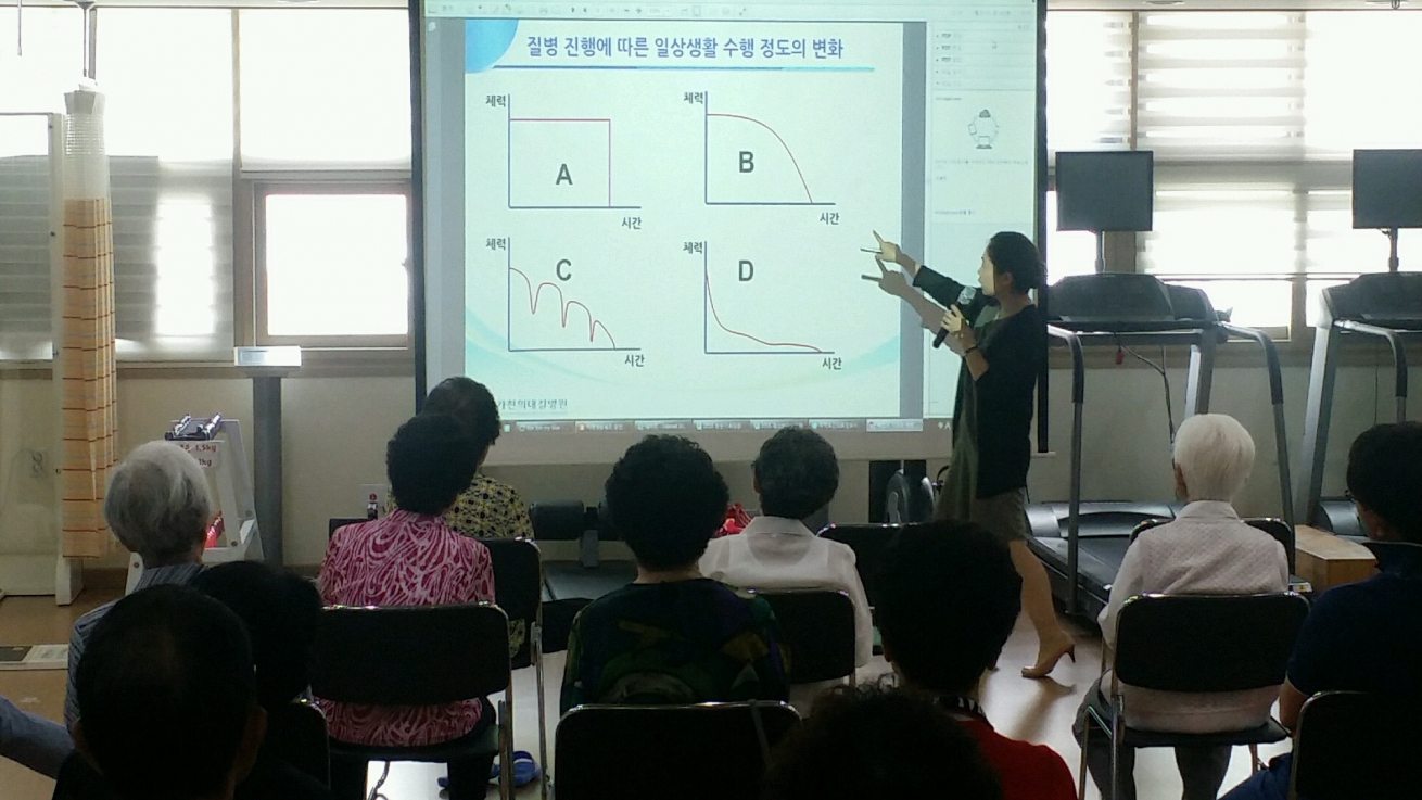 건강생활지원센터(3층)에서 지역주민 25명을 대상으로 혈액종양내과 안희경 교수가 폐암의 치료와 예방에 대한 교육을 하였습니다.