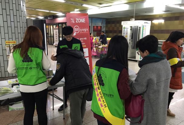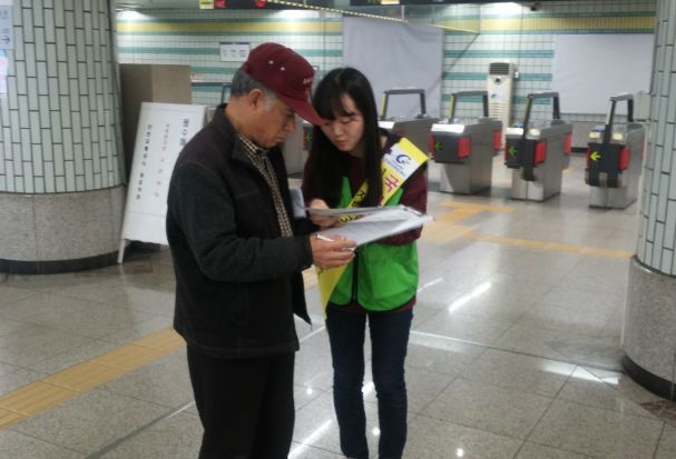 11월 23일(월) 인천지역암센터와 연수구보건소는 암예방 서포터즈와 함께 동춘역에서 지역 주민들을 대상으로 암예방과 검진에 대해 홍보와 암예방과 검진 설문조사를 실시