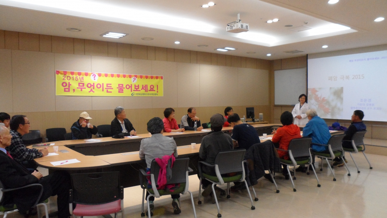 10월은 혈액종양내과 조은경 교수가 폐암을 주제로 폐암의 원인, 증상, 진단, 치료 및 부작용에 대해 강의하고, 평소 궁금했던 부분을 묻고 답하는 시간을 가졌습니다.