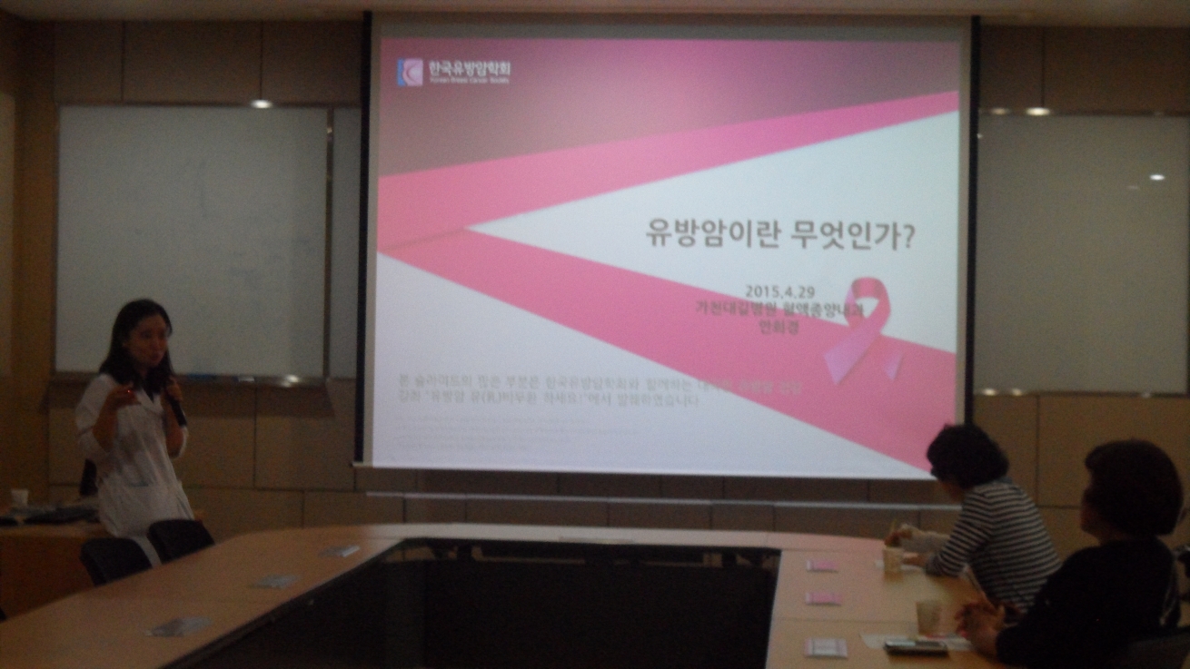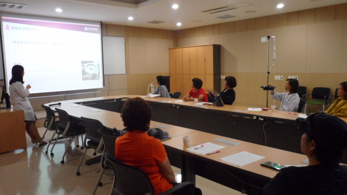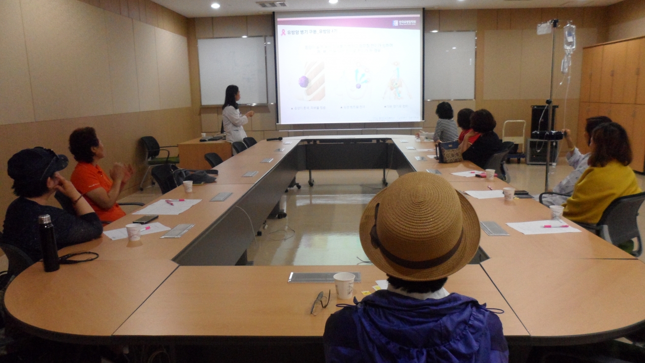 9월은 유방암을 주제로 혈액종양내과 안희경 교수가 유방암의 원인, 증상, 진단, 치료 방법 등에 대해 교육하고, 평소 환자와 가족들이 궁굼했던 질문에 답하는 시간을 가졌습니다.