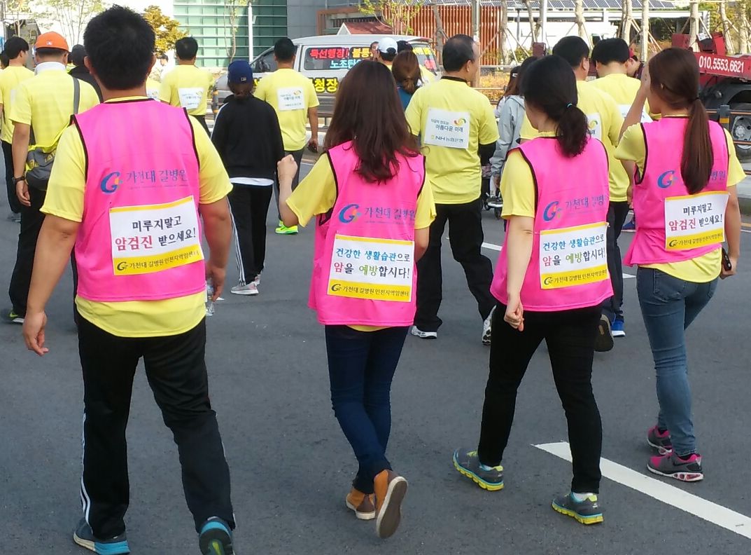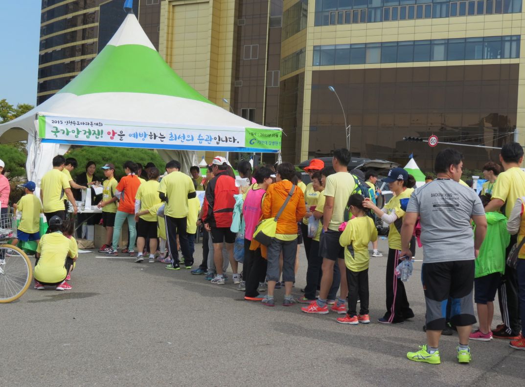 인천지역암센터에서는 2015년 10월 4일(일) 송도 국제 마라톤 대회장에서 참가자들을 대상으로 암예방 홍보 활동을 하였습니다.