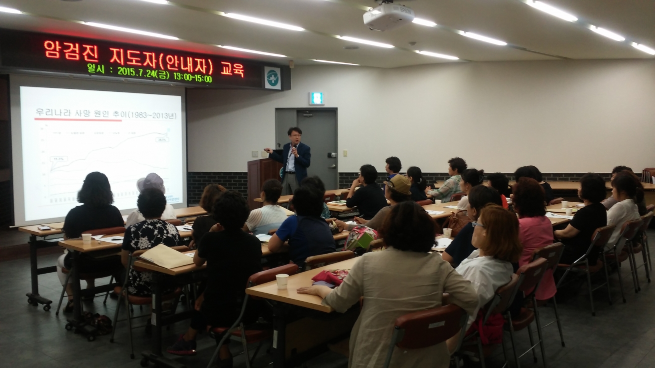7월 24일(금) 강화군보건소에서 강화군 암검진 안내자를 대상으로 2차 교육을 실시하였습니다. 교육은 암예방과