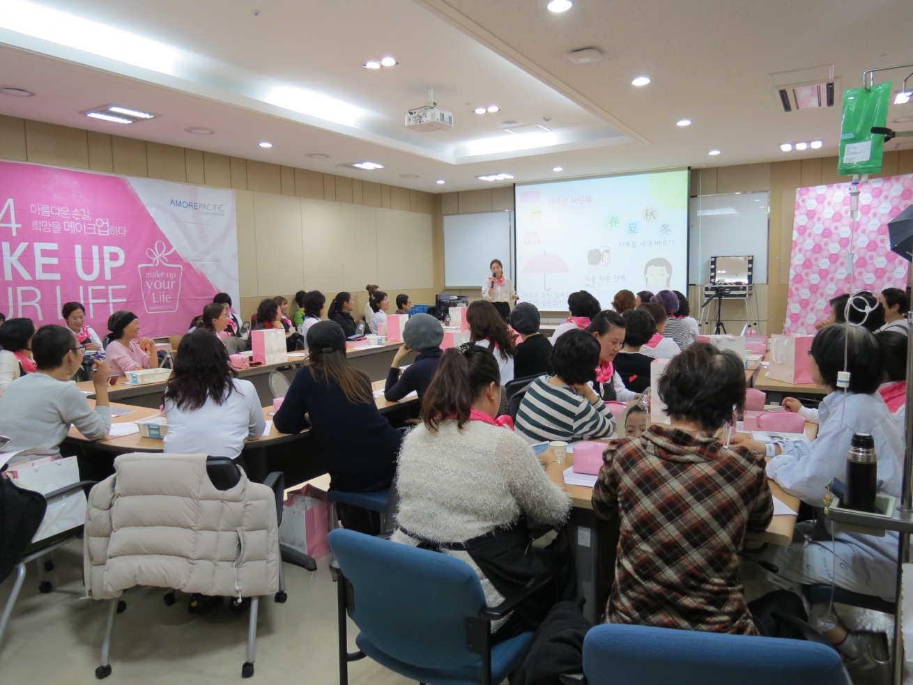 "Make up your life" 를 개최하였습니다. 행사에 참여한 여성암환우들은 잠시 잊었던 자신의 모습을 되찾으며 앞으로