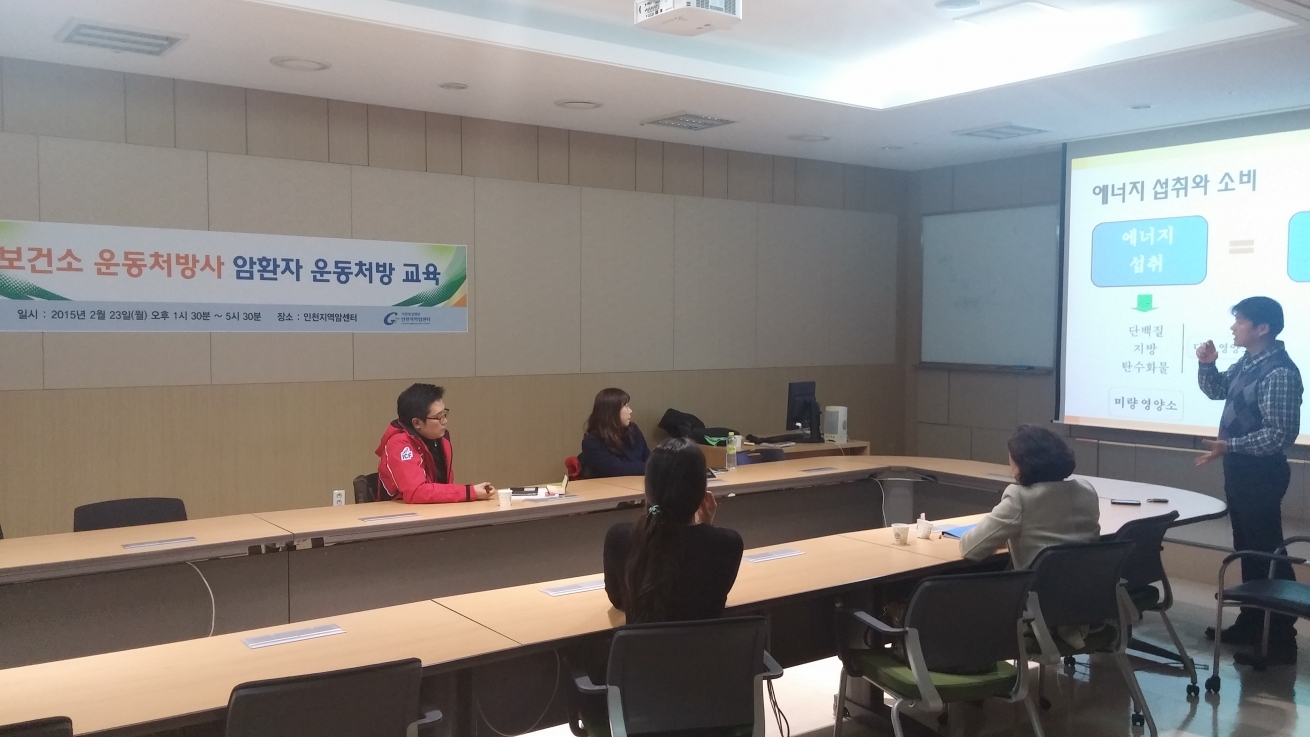 인천광역시 10개 군·구 보건소의 운동처방사들을 대상으로 2월 23일 암환자 운동처방 교육을 실시하였습니다.