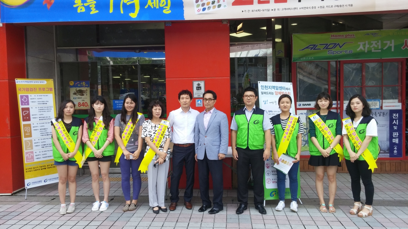 서포터즈와 함께 인천지역 주민들을 대상으로 암예방과 검진에 대해 홍보하였습니다.