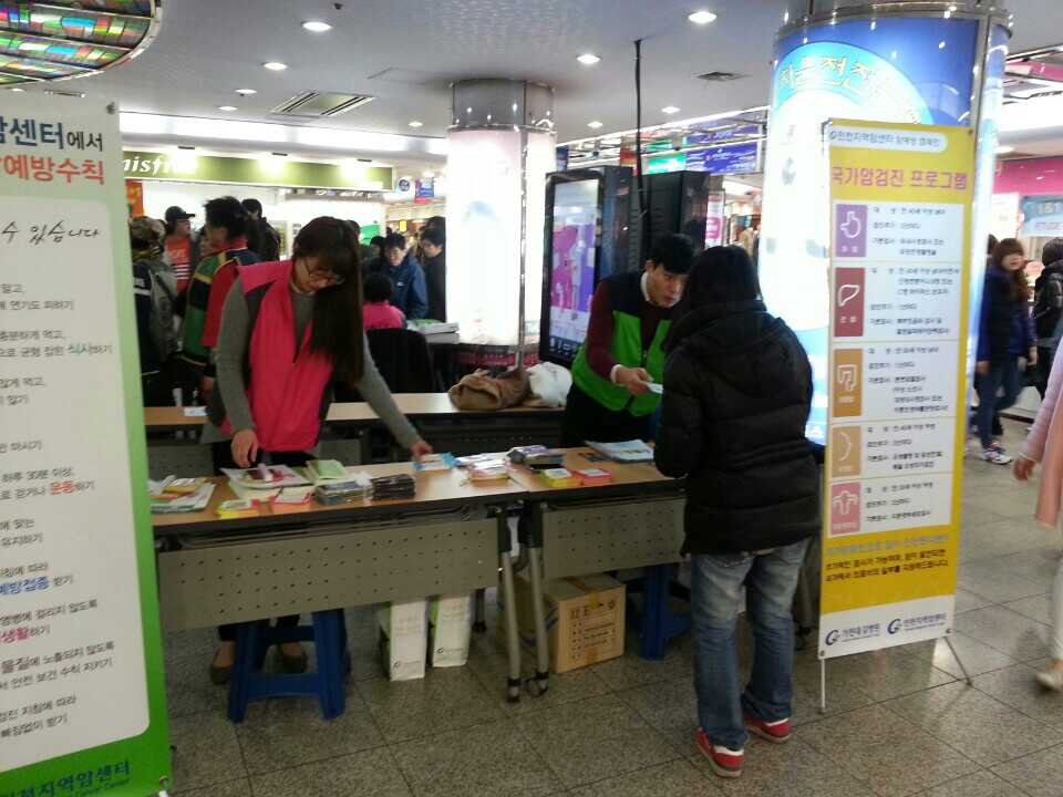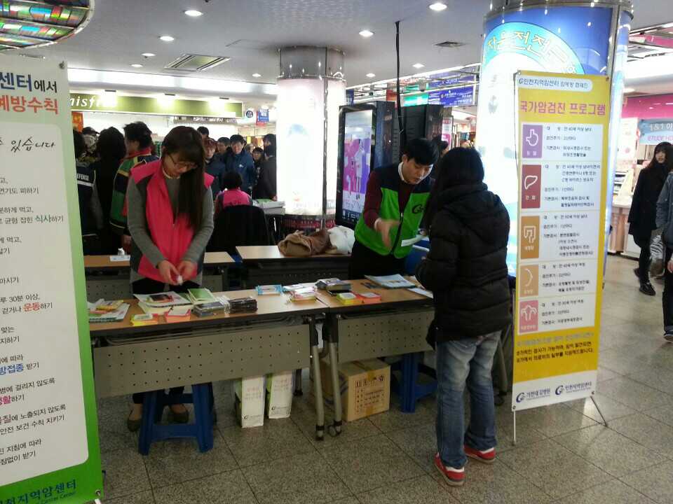 부평구보건소 함께 부평역에서 인천지역 주민들을 대상으로 암예방과 검진에 대해 홍보하였습니다.