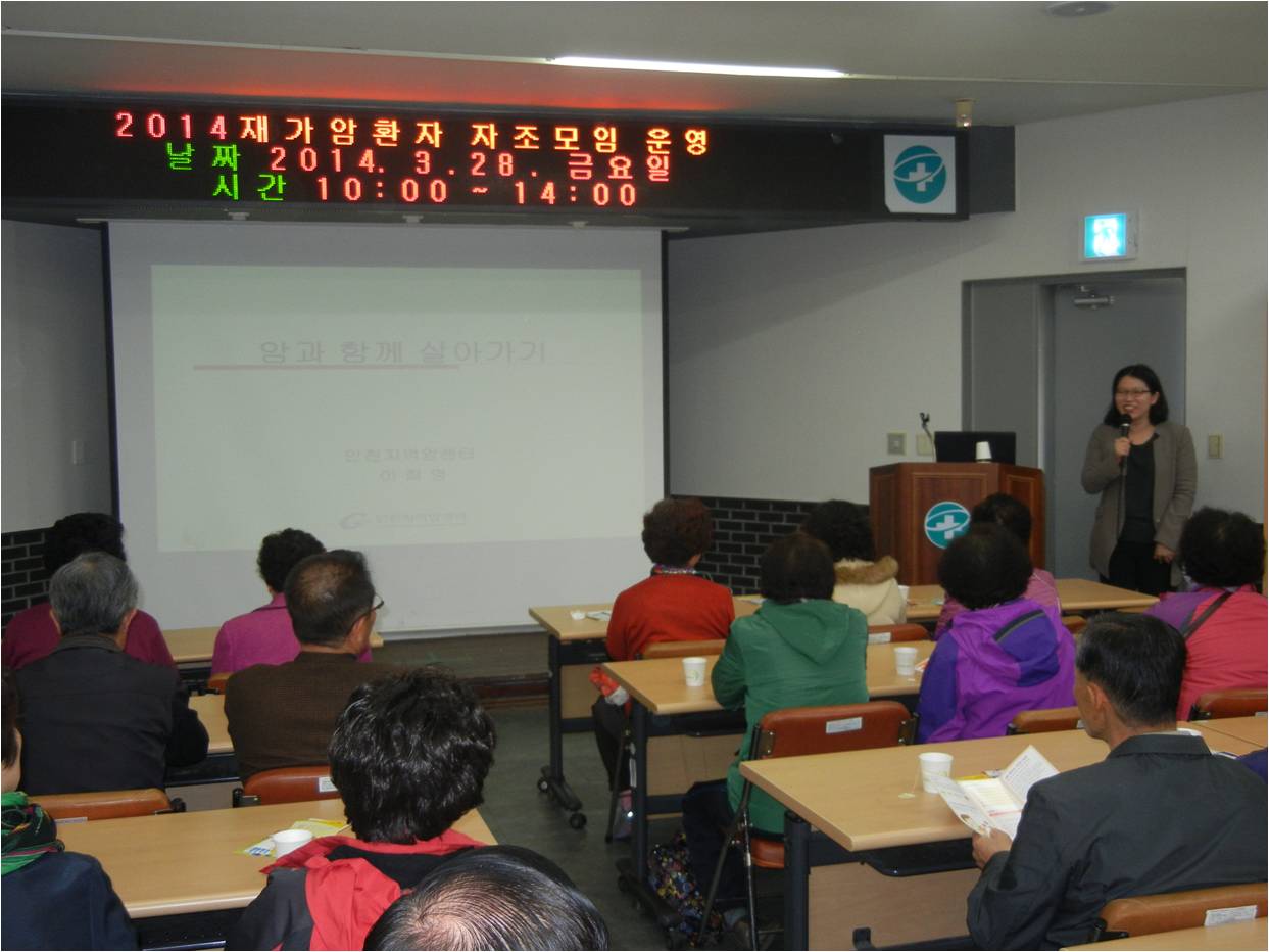 이날 교육은 암종에 따른 증상과 관리, 암환자의 만성질환 관리 등의 내용으로 인천지역암센터 이희영 교수가 강연하였습니다.
