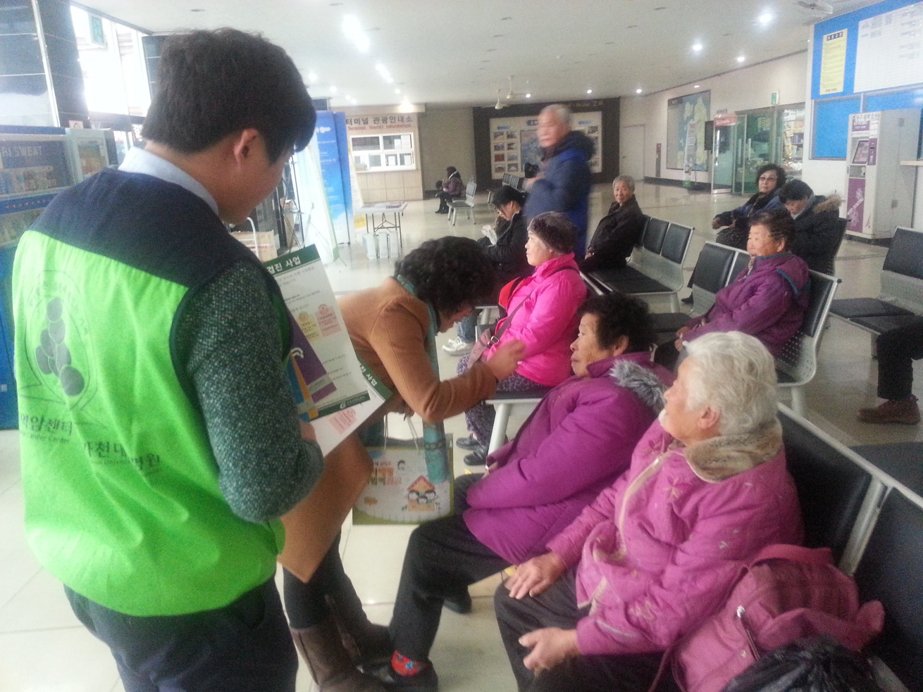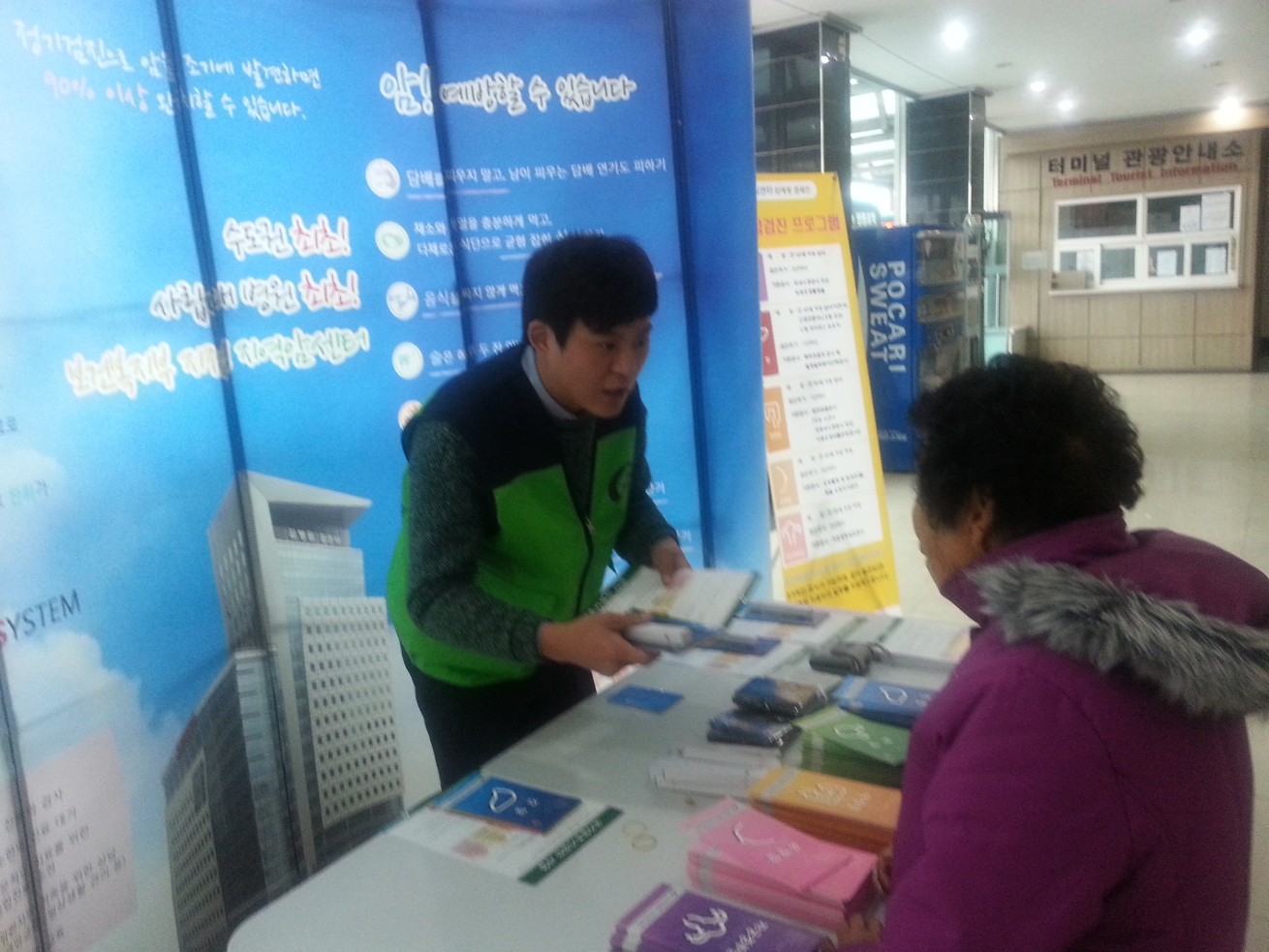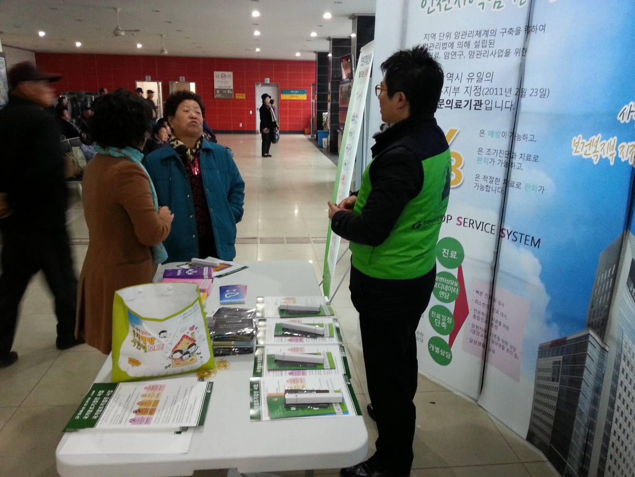 강화군 보건소와 함께 강화터미널에서 인천지역 주민들을 대상으로 암예방과 검진에 대해
