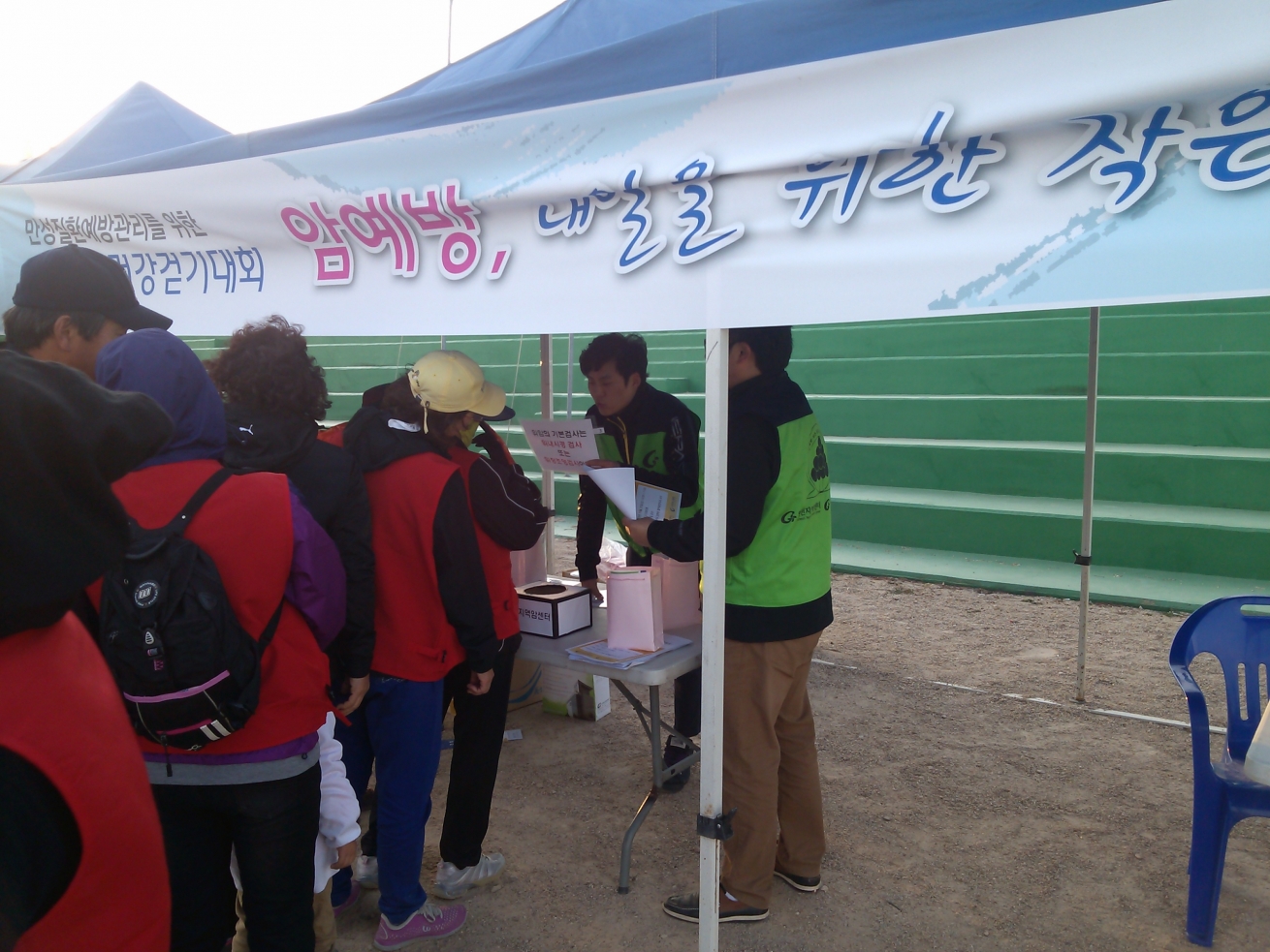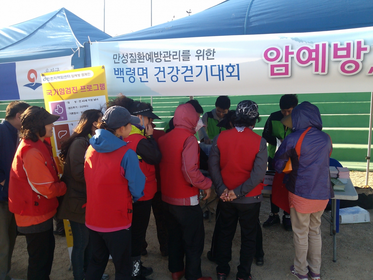 인천지역암센터는 10월 24일 백령도 건강걷기대회에 참여하는 인천시민들을 대상으로 암예방과 검진의 중요성에 대해 홍보하였습니다.