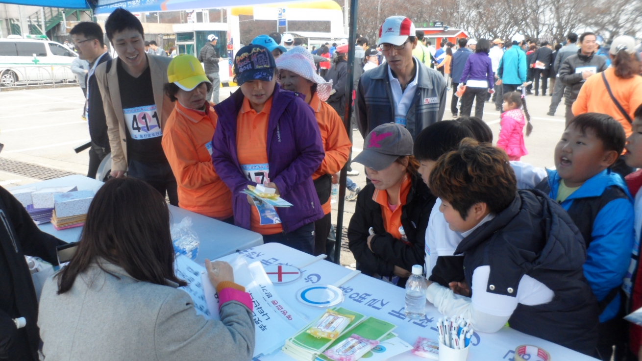 인천지역암센터는 4월 25일 영흥도 십리포 해수욕장 금연선포식 및 건강걷기대회에 참여하는 인천시민들을 대상으로 암예방과 검진의 중요성에 대해 홍보하였습니다.