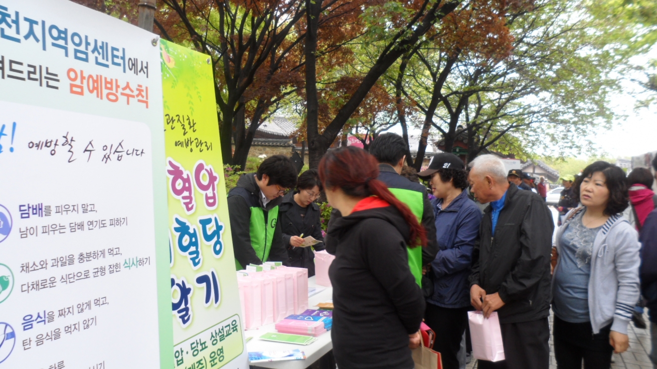 5월 10일 인천광역시 동구에서 개최 된 '화도진 축제'에 참여하여 지역 주민들을 대상으로 암예방 및 검진에 대한 홍보를 하였습니다.
