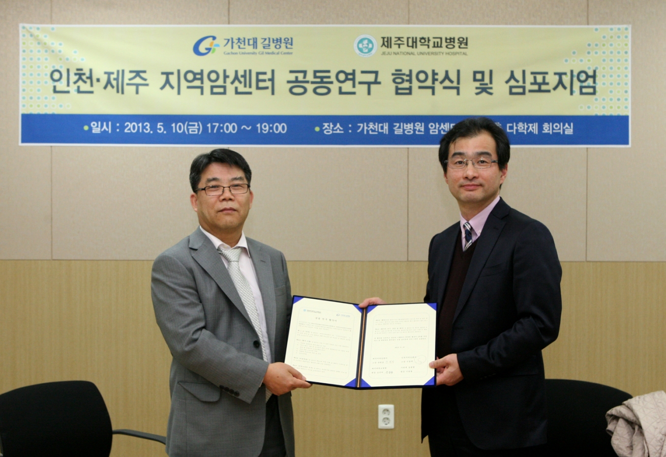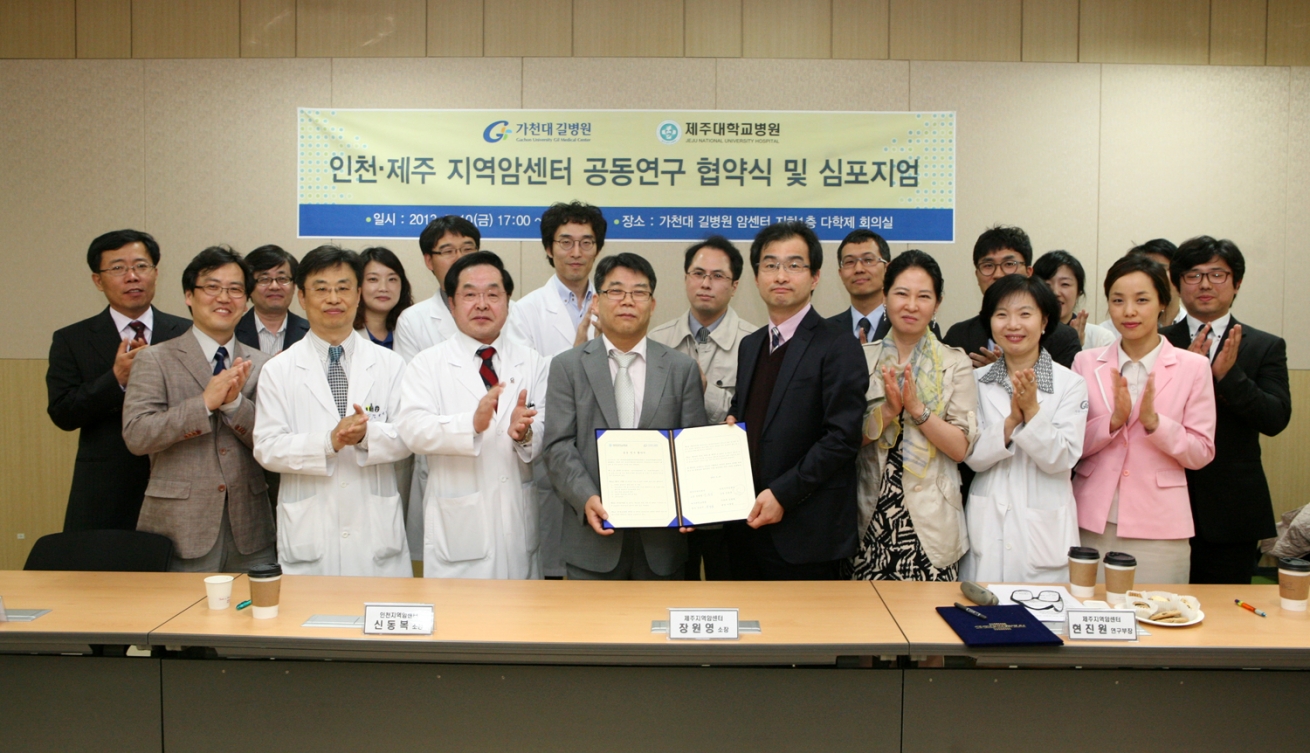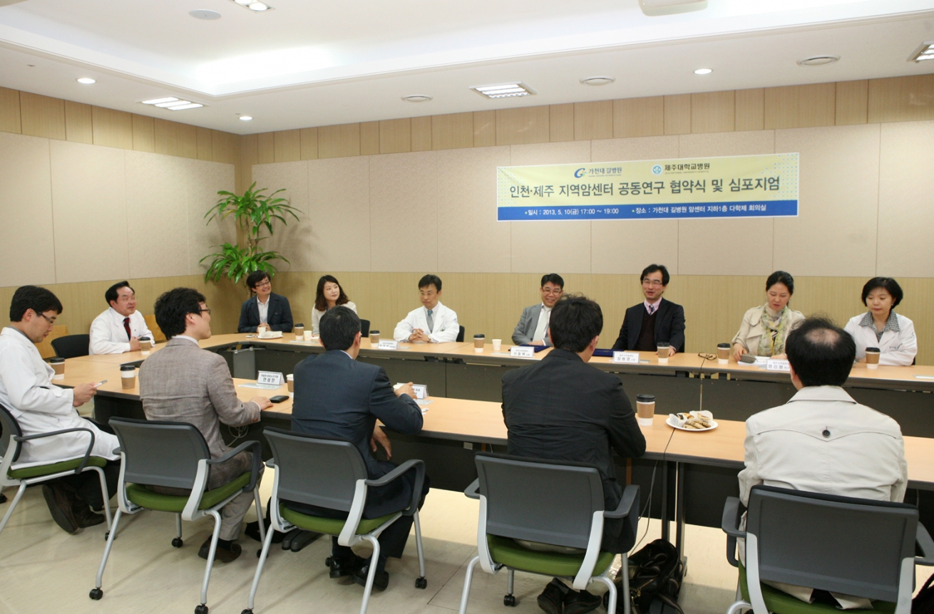 인천지역암센터와 제주지역암센터는 5월 10일 인천지역암센터 지하 1층 다학제 회의실에서 공동연구 협약식 및 심포지엄을 개최하였습니다.