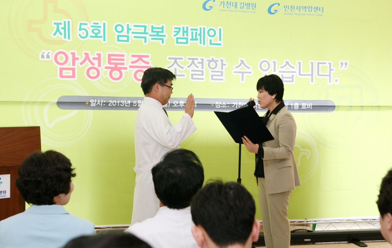 2013년 5월 20일(월) 인천지역암센터 1층 로비에서 제5회 암극복캠페인 '암성통증 조절할 수 있습니다'를 개최하였습니다.