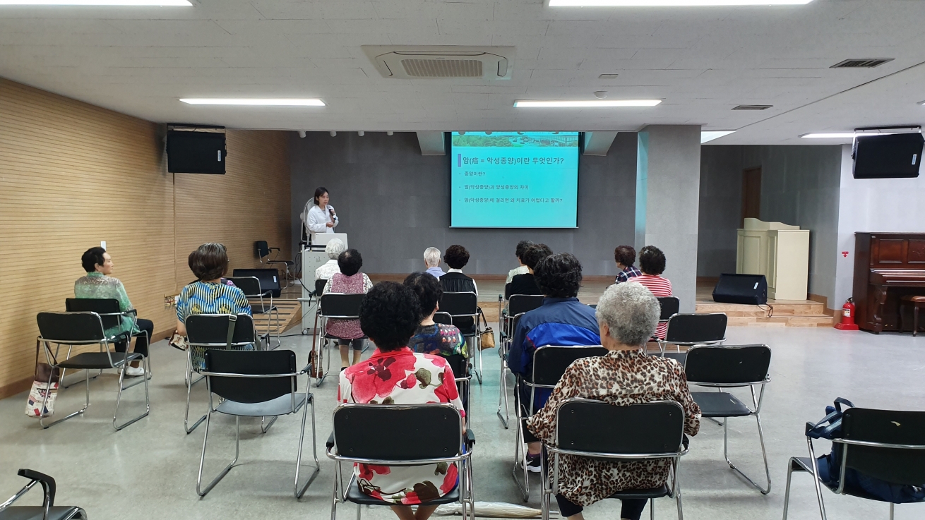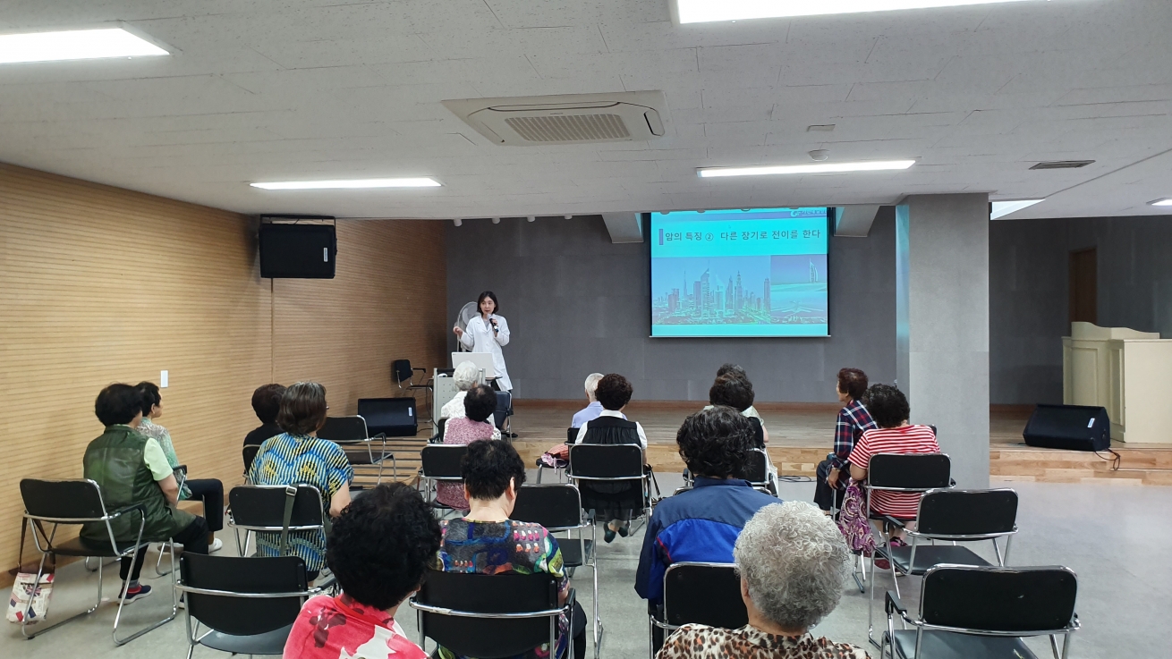 | 2019년 9월 6일 연수구 지역주민을 대상으로 세화종합사회복지관에서 유방암 치료 및 예방 관리에 대해 가천대 길병원 외과 안희경 교수가 교육을 실시하였습니다. |