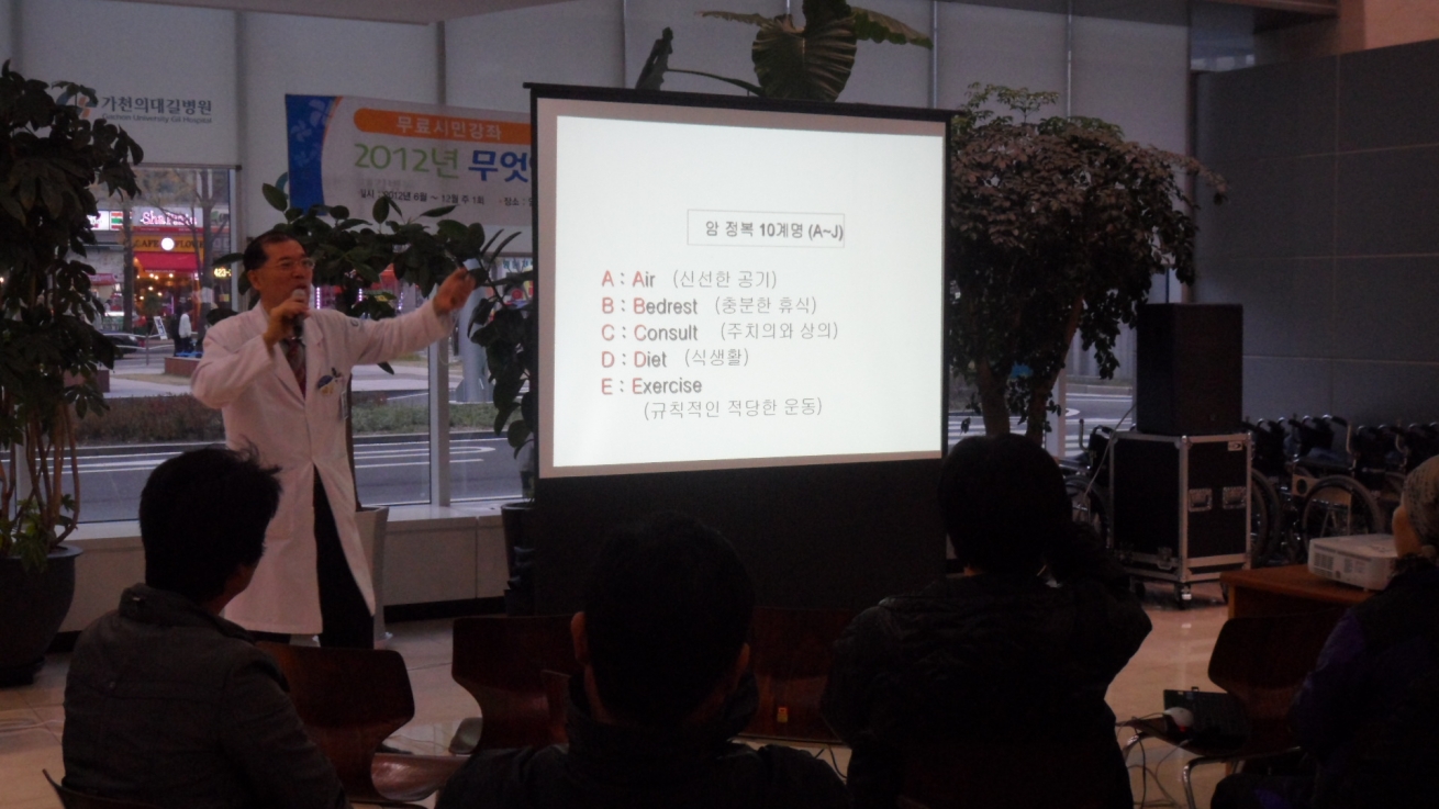 10월 31일 인천지역암센터 1층 로비에서 [무엇이든 물어보세요!]가 [암검진과 건강검진]이라는 주제로 인천지역암센터 이홍식 교수의 강좌가 있었습니다.