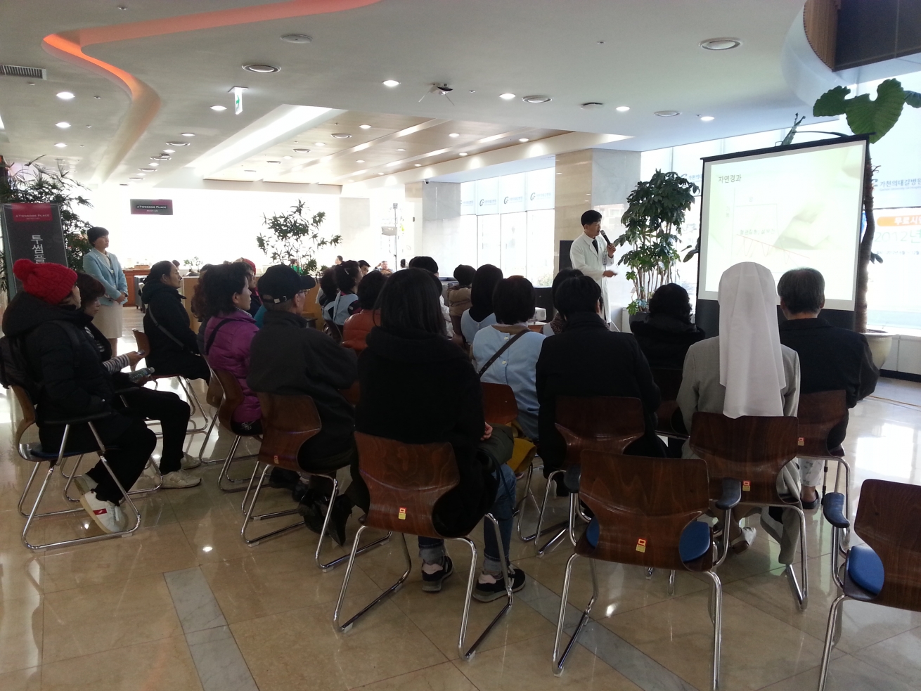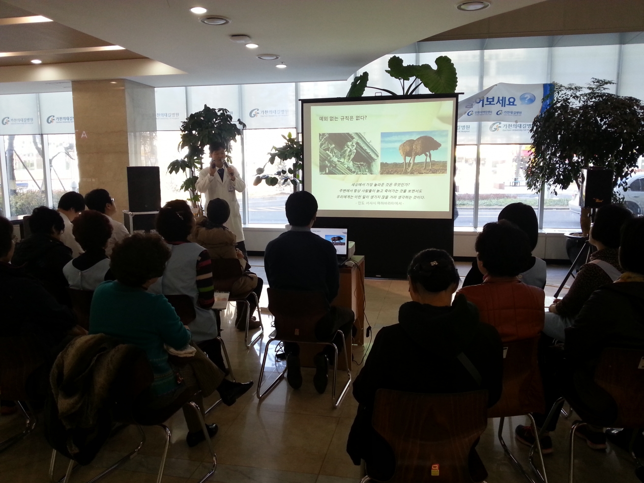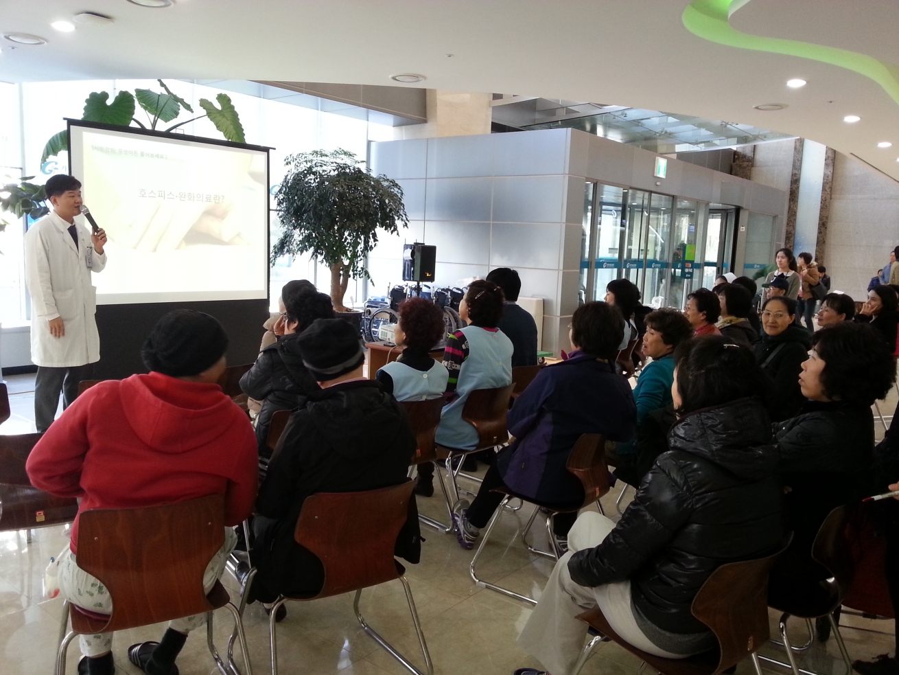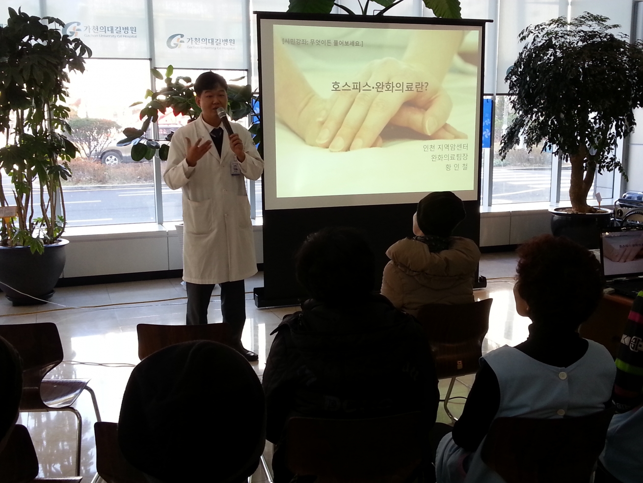 11월 14일 인천지역암센터 1층 로비에서 [무엇이든 물어보세요!]가 [호스피스완화의료는 암환자에게 어떤 도움을 줄 수 있을까요?]라는 주제로 인천지역암센터 황인철 교수의 강좌가 있었습니다.