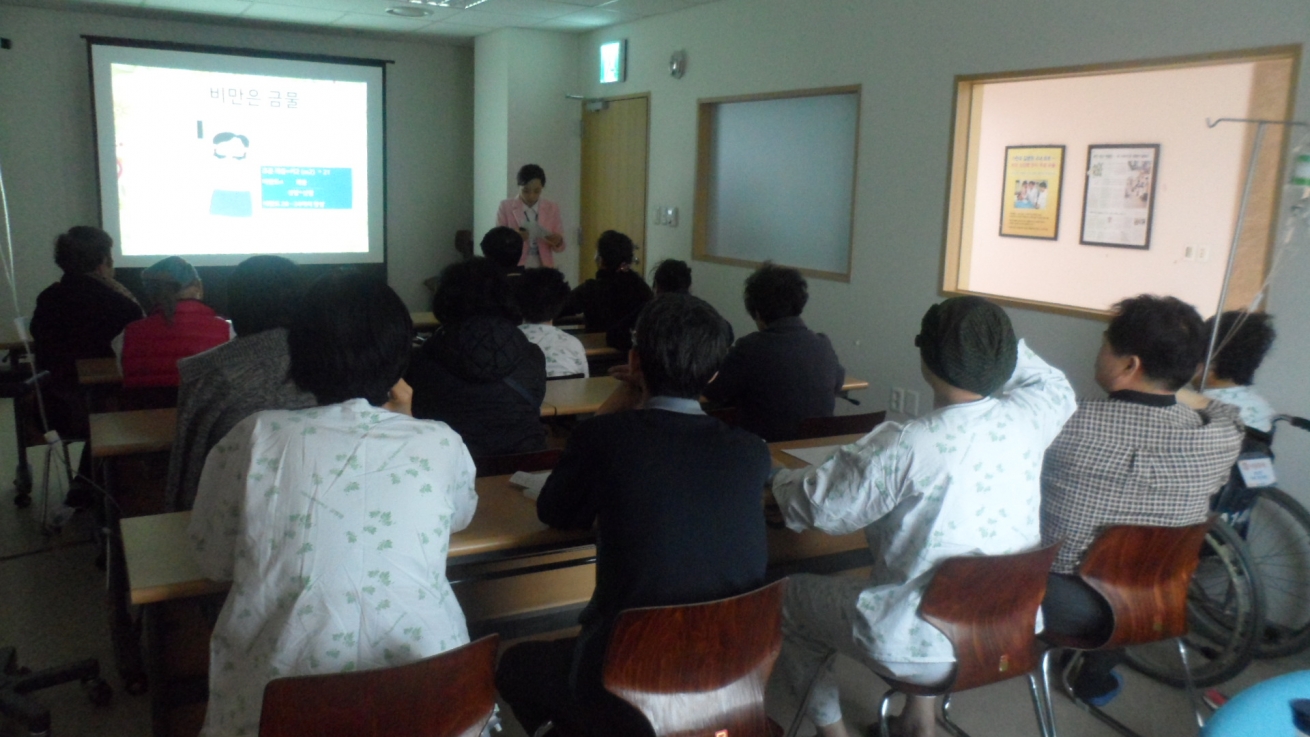 저희 인천지역암센터 18층 교육실에서는 암환자와 가족을 위한 노래교실, 림프부종예방법, 스트레칭과 근력운동, 아트테라피, 외모관리, 요가, 웃음요법, 음악치료, 쿠킹테라피 등 매월 다양한 프로그램을 준비하여 실시하고 있습니다.