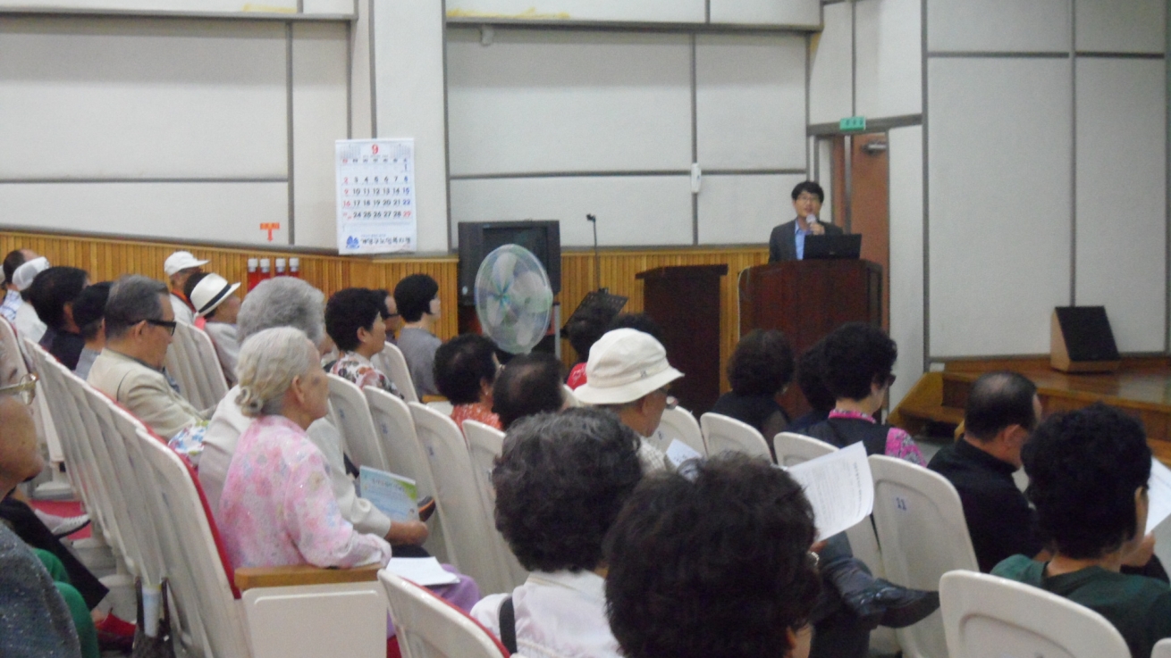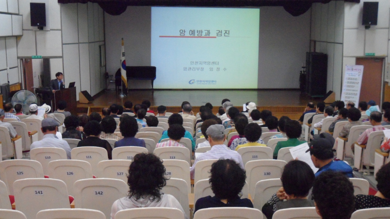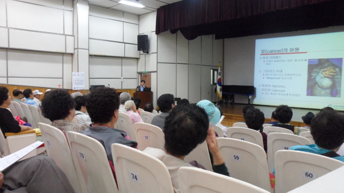 9월 26일 계양구 노인복지회관 3층 대강당에서 노인복지회관을 이용하시는 주민 150여명을 대상으로 인천지역암센터 임정수 교수가 암예방 강좌를 실시하였습니다.