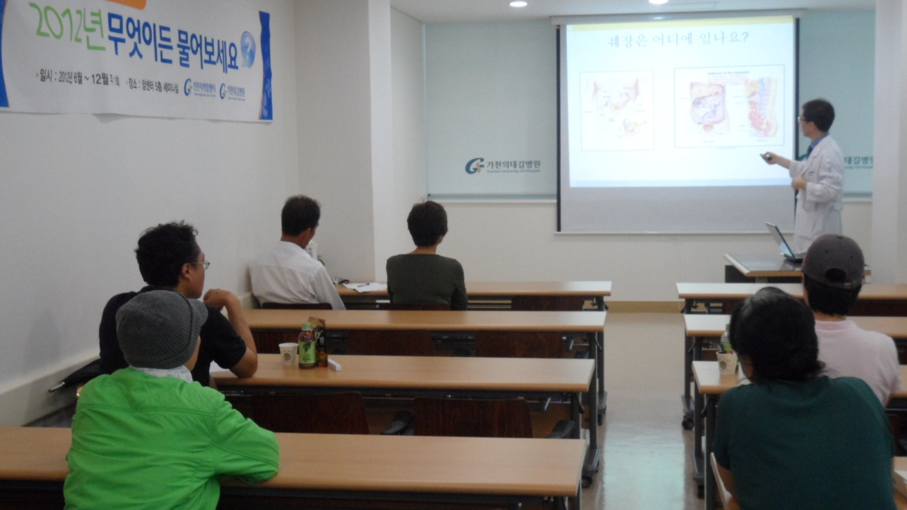 9월 28일 인천지역암센터 5층에서 무료 시민강좌 [무엇이든 물어보세요!]가 [췌장암 치료, 현명하게 대처하자!]라는 주제로 인천지역암센터 김연석 교수의 강좌가 있었습니다.