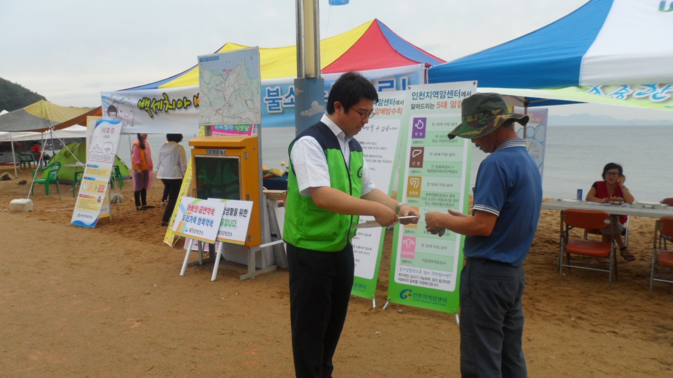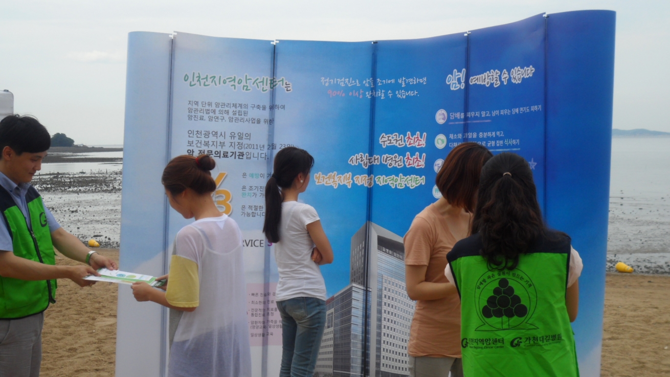 인천지역암센터는 8월 10일 영흥도 십리포 해수욕장에서 해수욕장을 방문한 방문객들과 인천시민들을 대상으로 암예방과 검진의 중요성에 대해