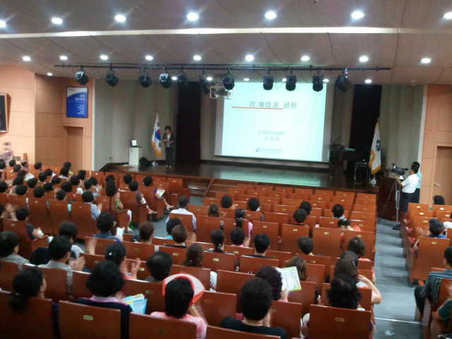 8월 14일 부평구청 대회의실에서 인천지역암센터 이희영 교수가 지역 통·반장 350명을 대상으로 '국가암검진' 설명회에서 강연을 하였습니다.