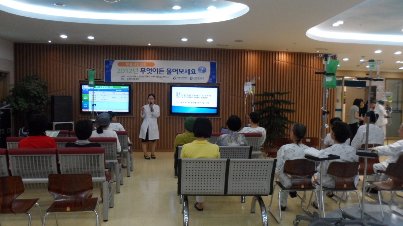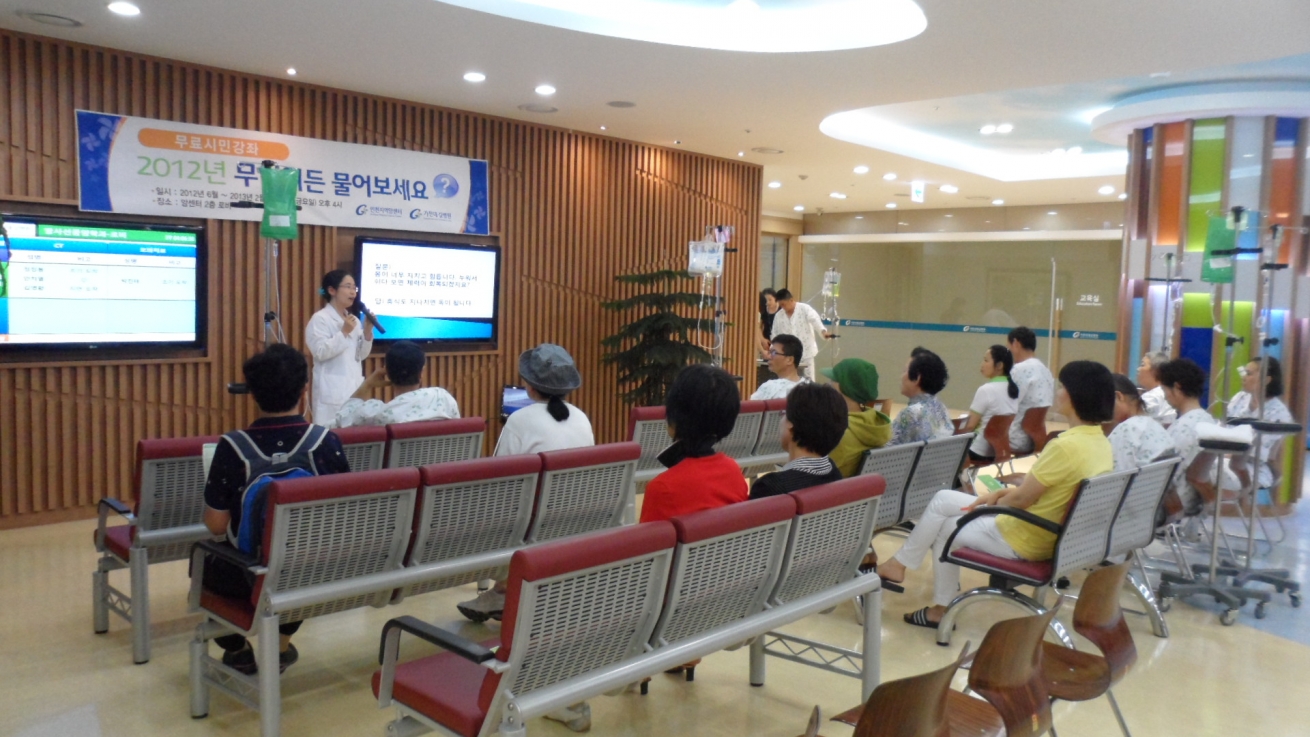 7월 13일 인천지역암센터 지하 1층에서 무료 시민강좌 [무엇이든 물어보세요!]가 [규칙적인 운동이 암 치료에 도움을 줄 수 있나요?]라는 주제로 인천지역암센터 안희경 교수의 강좌가 있었습니다.