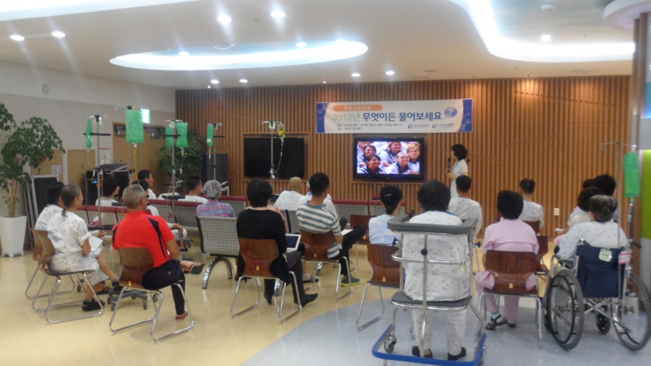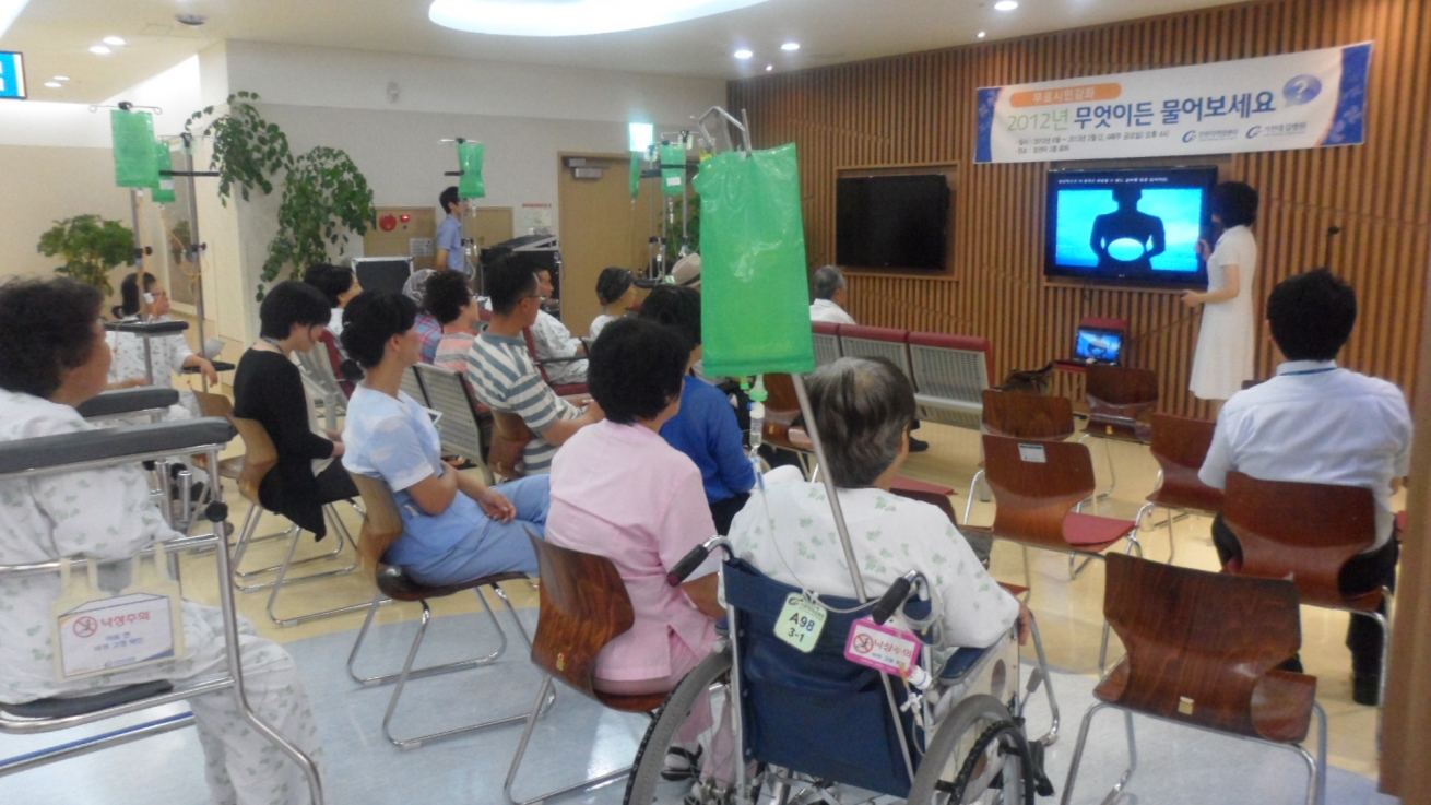 7월 27일 인천지역암센터 지하 1층에서 무료 시민강좌 [무엇이든 물어보세요!]가 [암환자의 심신치료요법 - 의미요법(Logotherapy)의 적용]이라는 주제로 삼육대학교 강경아 교수의 강좌가 있었습니다.