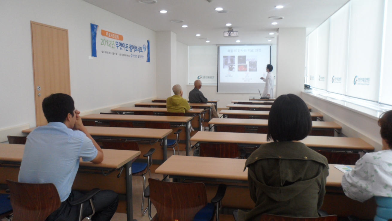 9월 14일 인천지역암센터 5층에서 무료 시민강좌 [무엇이든 물어보세요!]가 [담배 그리고 폐암.]이라는 주제로 인천지역암센터 강신명 교수의 강좌가 있었습니다.