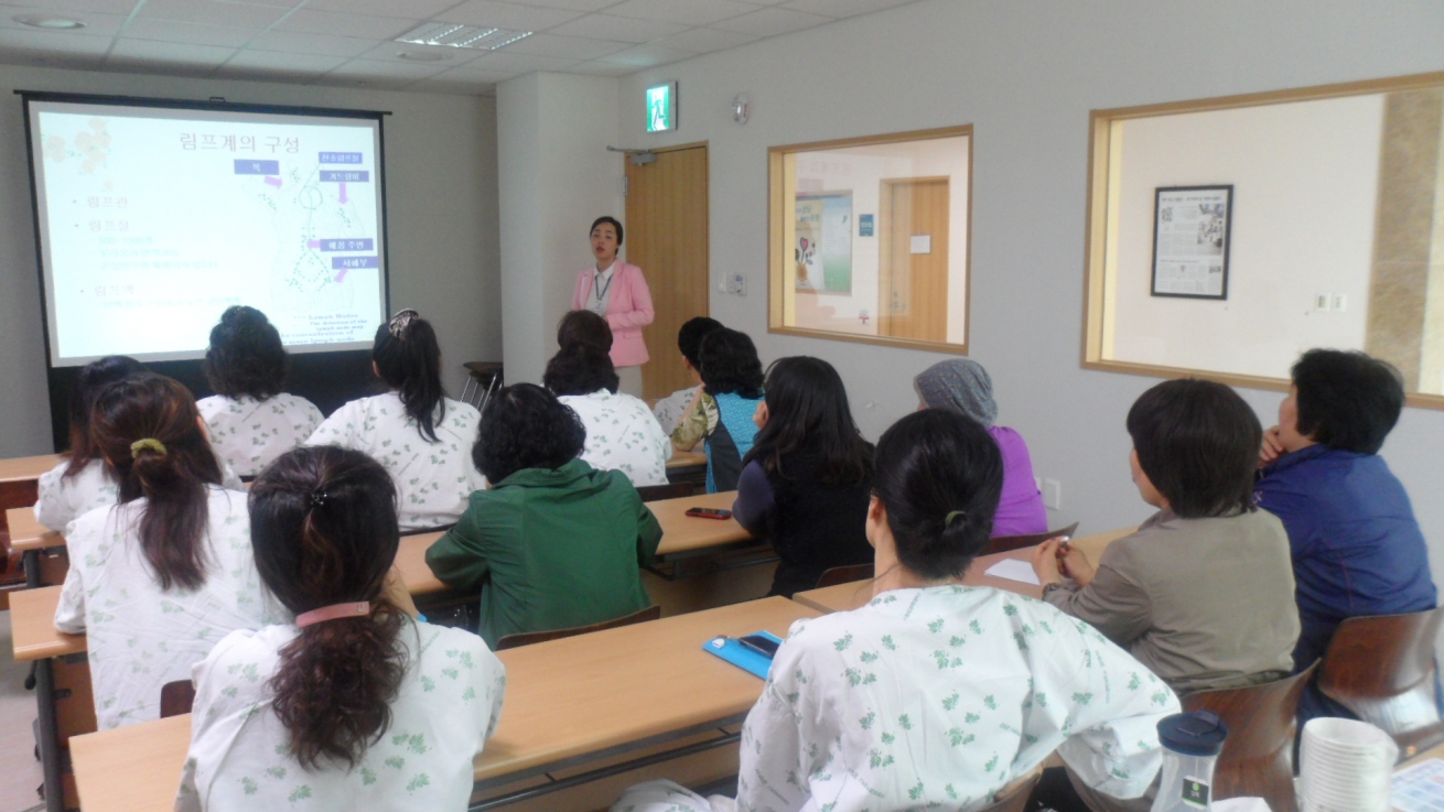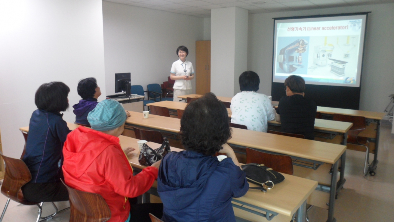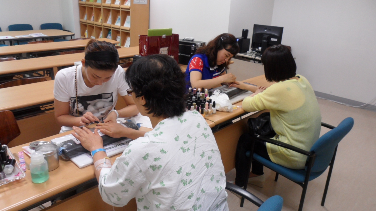 저희 인천지역암센터에 18층 교육실에서는 암환자와 가족을 위한 네일아트, 노래교실, 림프부종, 마인드테라피, 방사선, 사회복지, 아로마테라피, 영양관리, 외모관리, 운동교실, 웃음요법, 지압과 마사지, 쿠킹클래스, 피로관리, 항암제부작용 등 매월 다양한 프로그램을 준비하여 실시하고 있습니다.