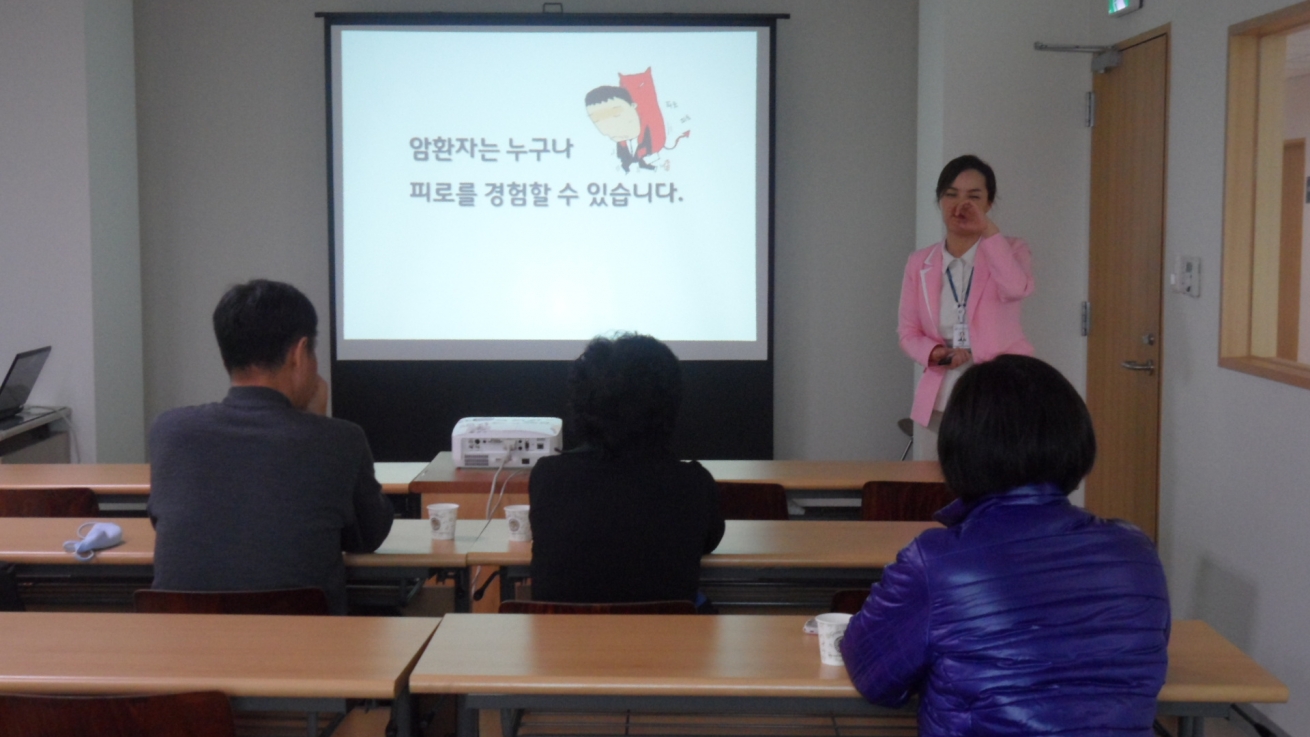 암센터 18층 교육실에서 암환자와 가족을 위한 피로관리 교육을 실시하였습니다.