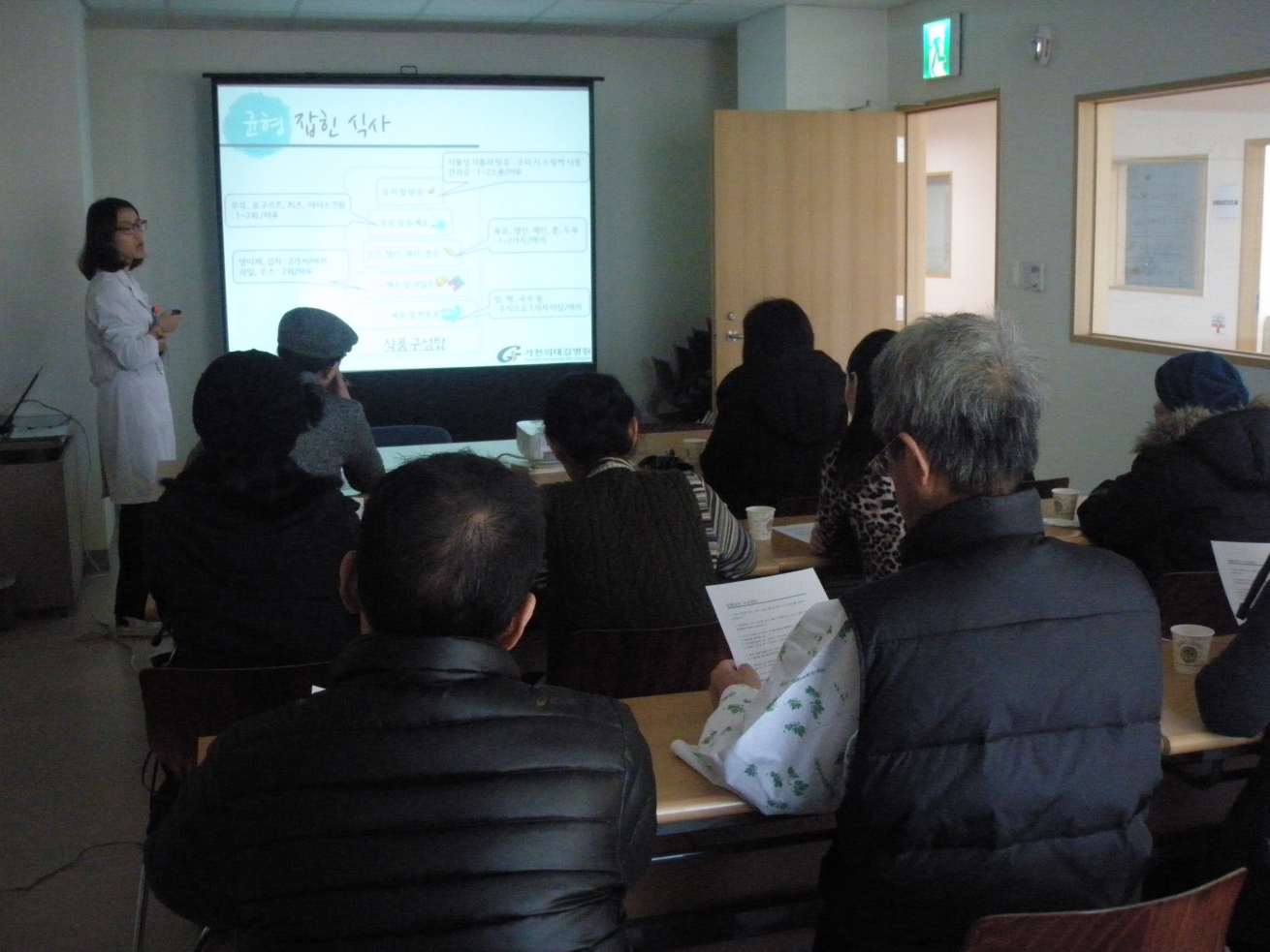 암센터 18층 교육실에서 암환자와 가족을 위한 암환자의 영양관리 교육을 실시하였습니다.