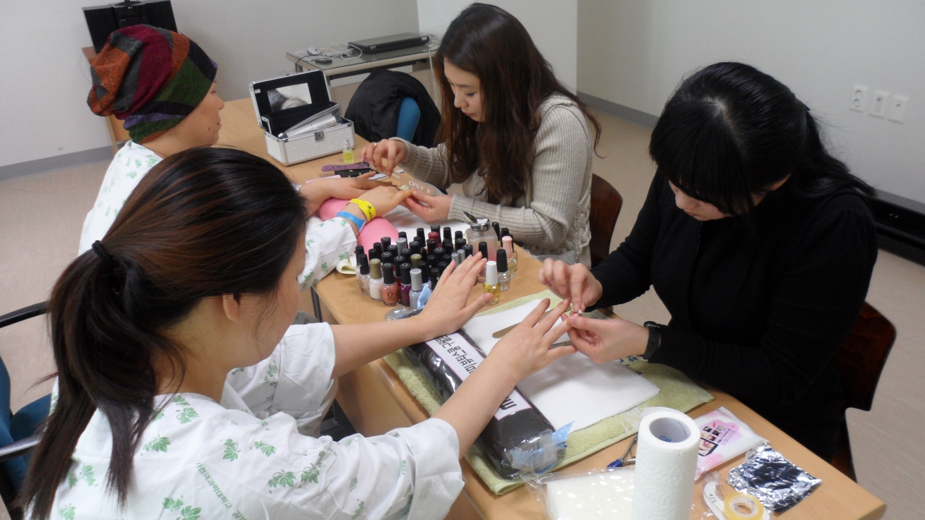 암센터 18층 교육실에서 암환자와 가족을 위한 네일아트 교육을 실시하였습니다.